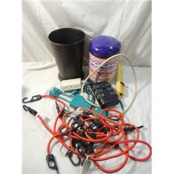 BOX LOT POWER STRIPS BUNGEES WASTBASKETS MORE
