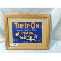 FRAMED FRUIT CRATE LABEL TIE-IT-ON PEARS MINT!