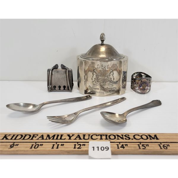 LOT OF 6 - HUDSONS BAY TRINKET BOX - NAPKIN RINGS - CUTLERY 1109 - LOT OF 6 - HUDSONS BAY TRINKET BOX - NAPKIN RINGS - CUTLERY