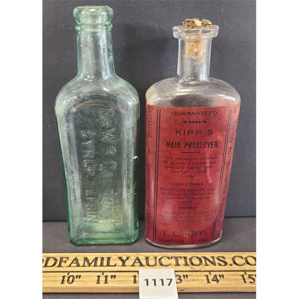 LOT OF 2 - KIPP'S HAIR PRESERVER & DR. WB CALDWELLS SYRUP PEPSIN BOTTLES 1117 - LOT OF 2 - KIPP'S HAIR PRESERVER & DR. WB CALDWELLS SYRUP PEPSIN BOTTLES