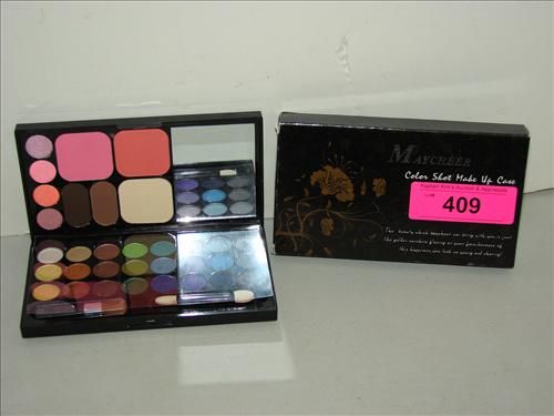 MAYCHEER COLOR SHOT MAKE UP CASE. INCLUDES: 28 EYE SHADOWS, 2 BLUSHERS, 2 EYEBROW CAKES, AND 1 POWDER CAKE. AS SHOWN. VIEW PICTURE FOR DETAIL.
