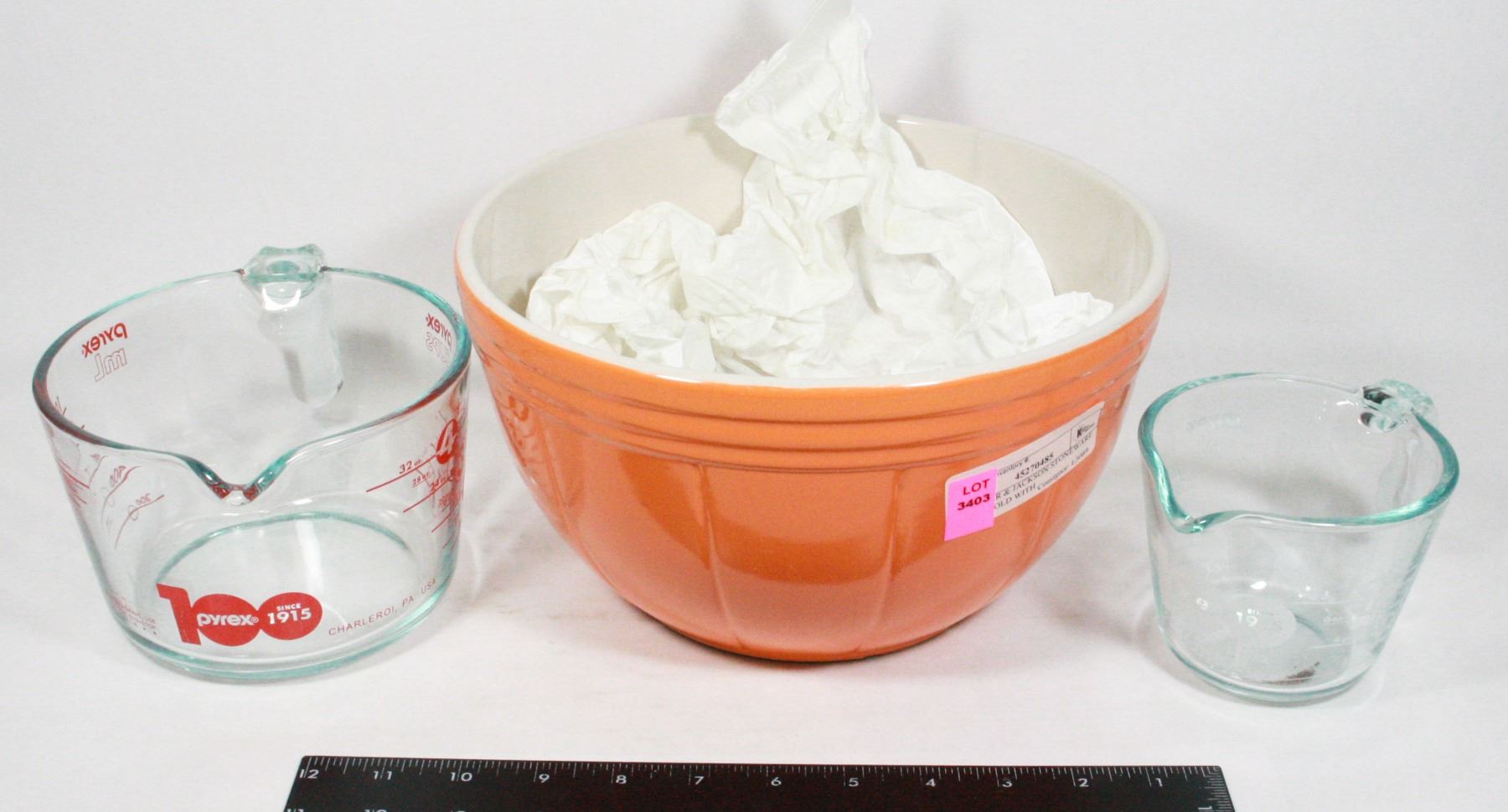 TWO PYREX MEASURE CUPS. ALL IN GOOD CONDITION