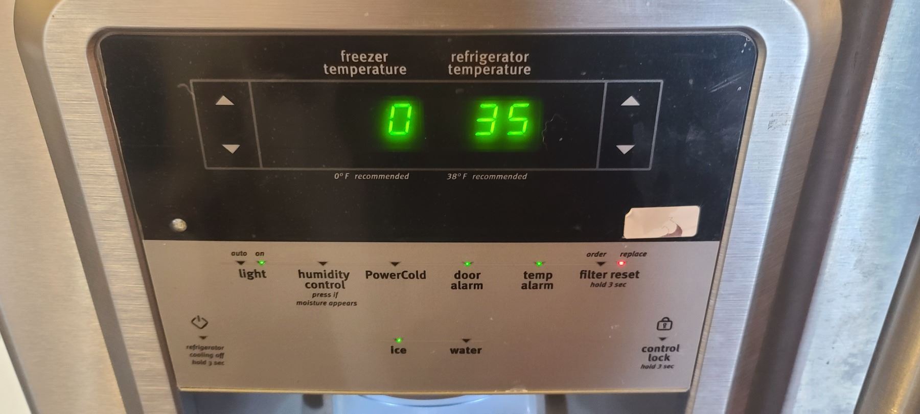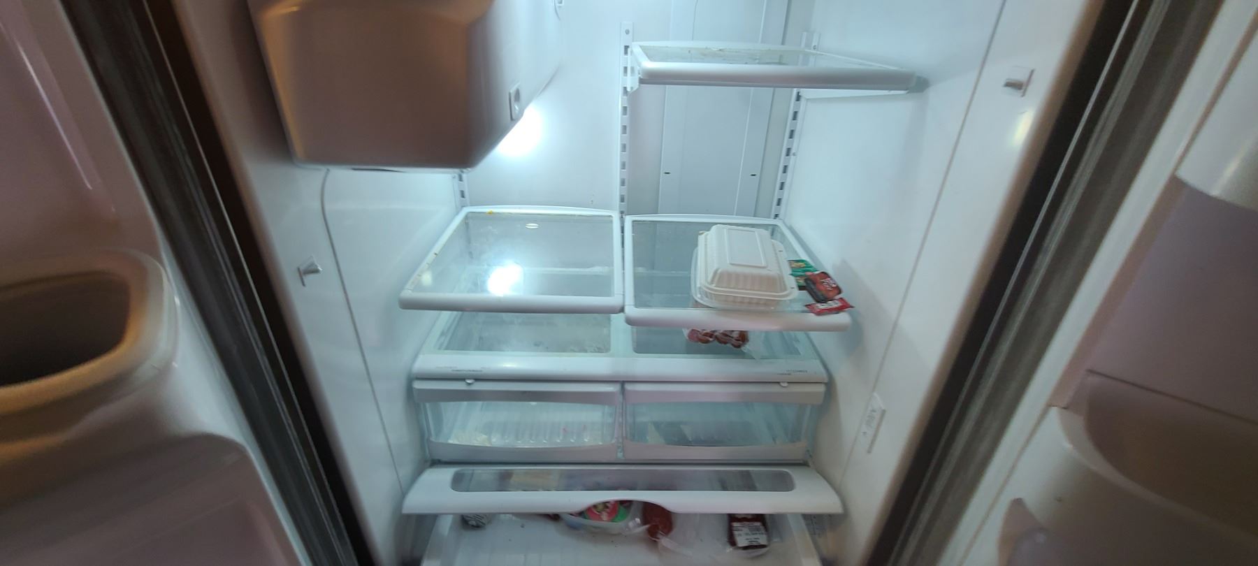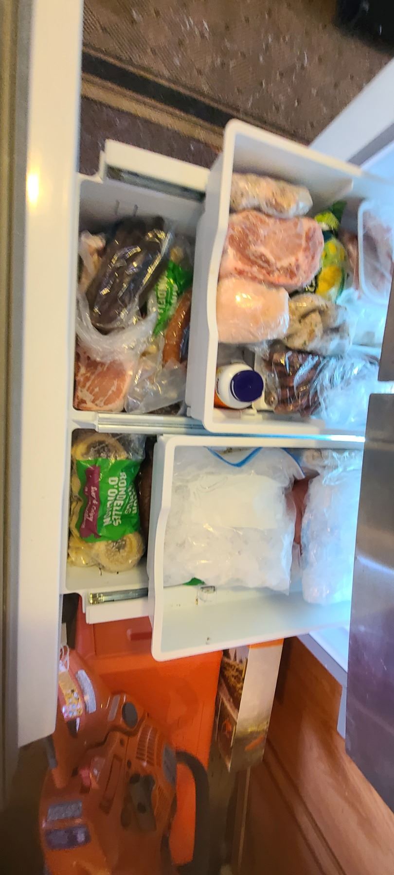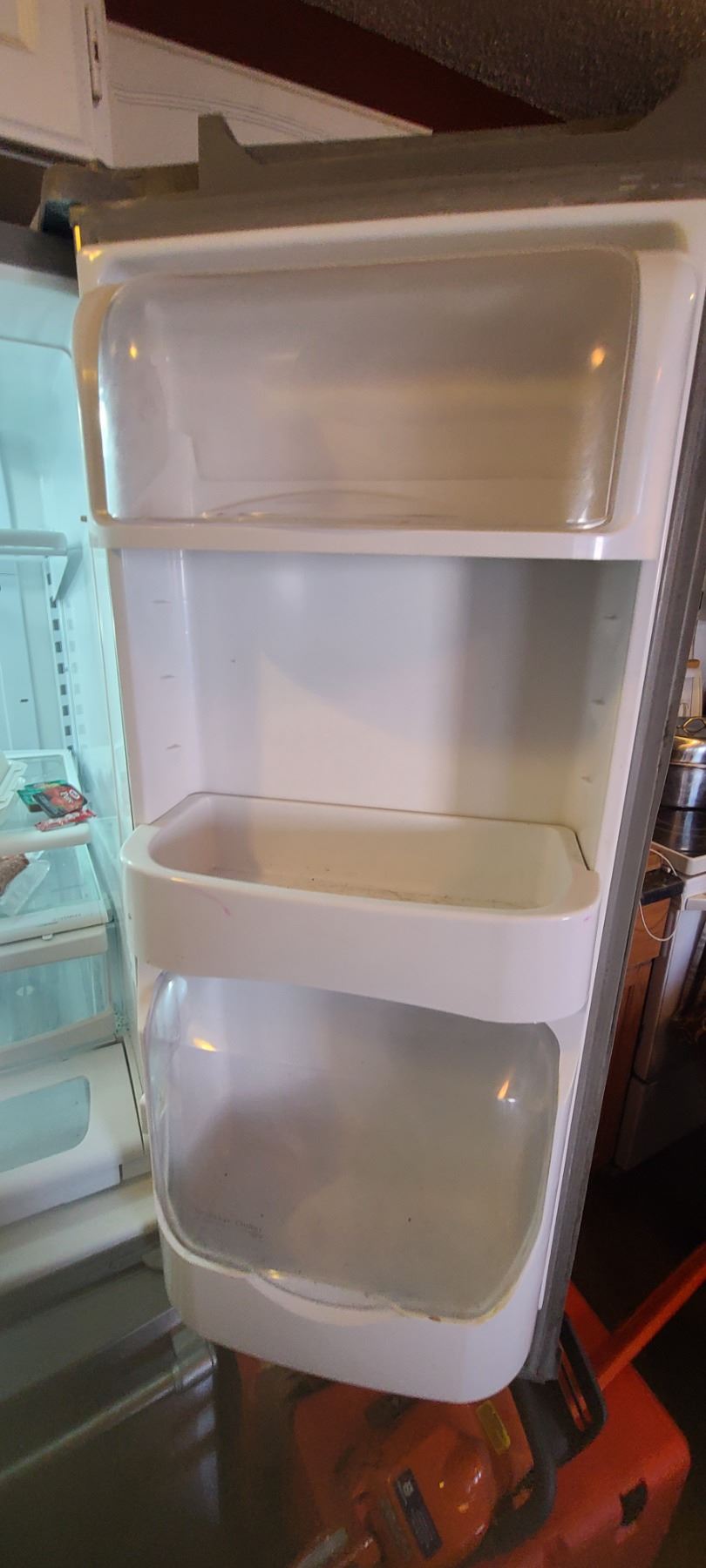 MAYTAG UPRIGHT STAINLESS STEEL TWO DOOR REFRIDGERATOR, ICE MAKER - COMES WITH CONTENTS