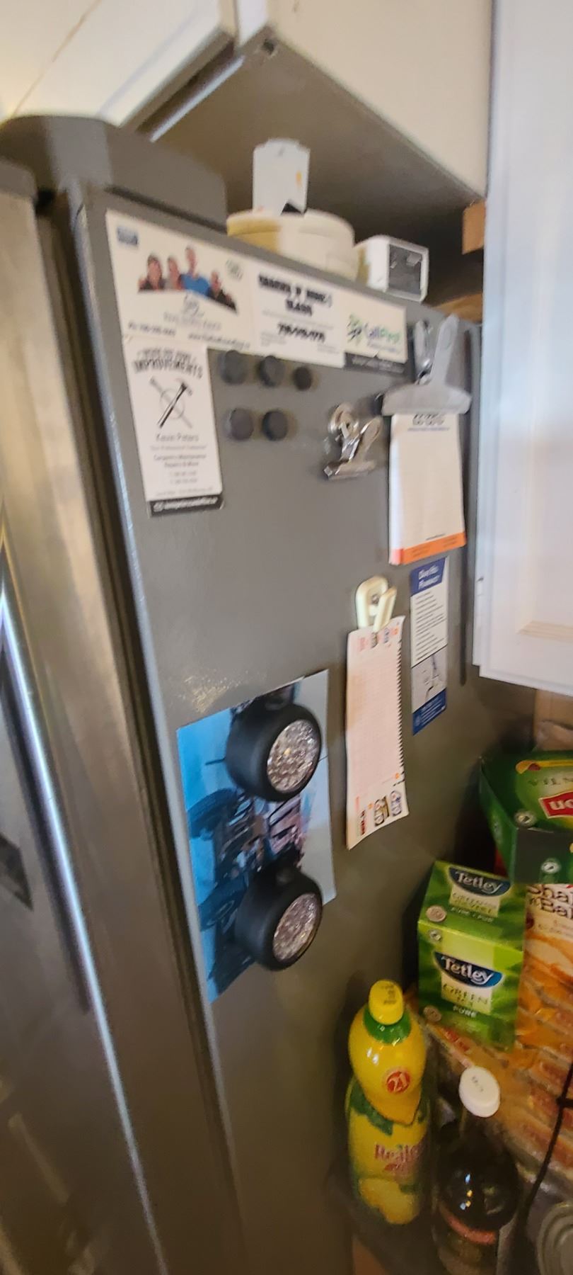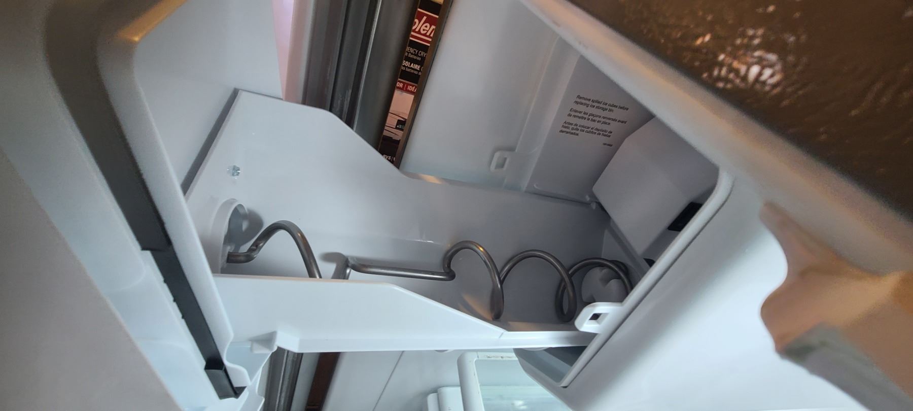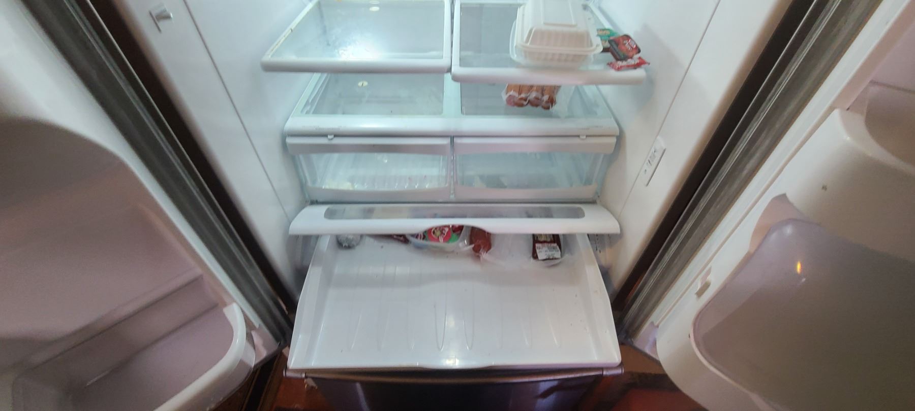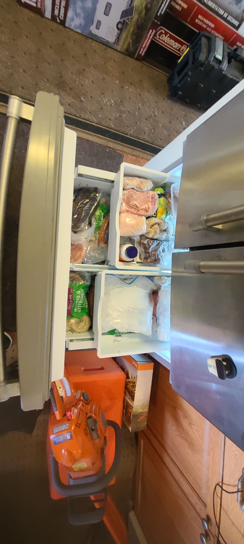 MAYTAG UPRIGHT STAINLESS STEEL TWO DOOR REFRIDGERATOR, ICE MAKER - COMES WITH CONTENTS