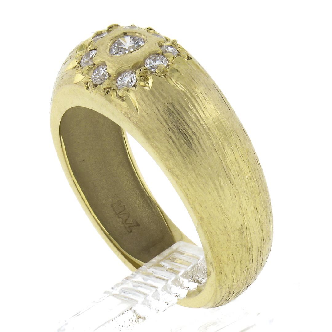 A solid 14k yellow gold cluster band by MAZ, featuring 10 round cut natural diamonds (F/G - VS1/VS2 ; 0.27ctw). The ring is size 6.0, weighs a total of 6.88 grams, and measures 7.5mm wide.