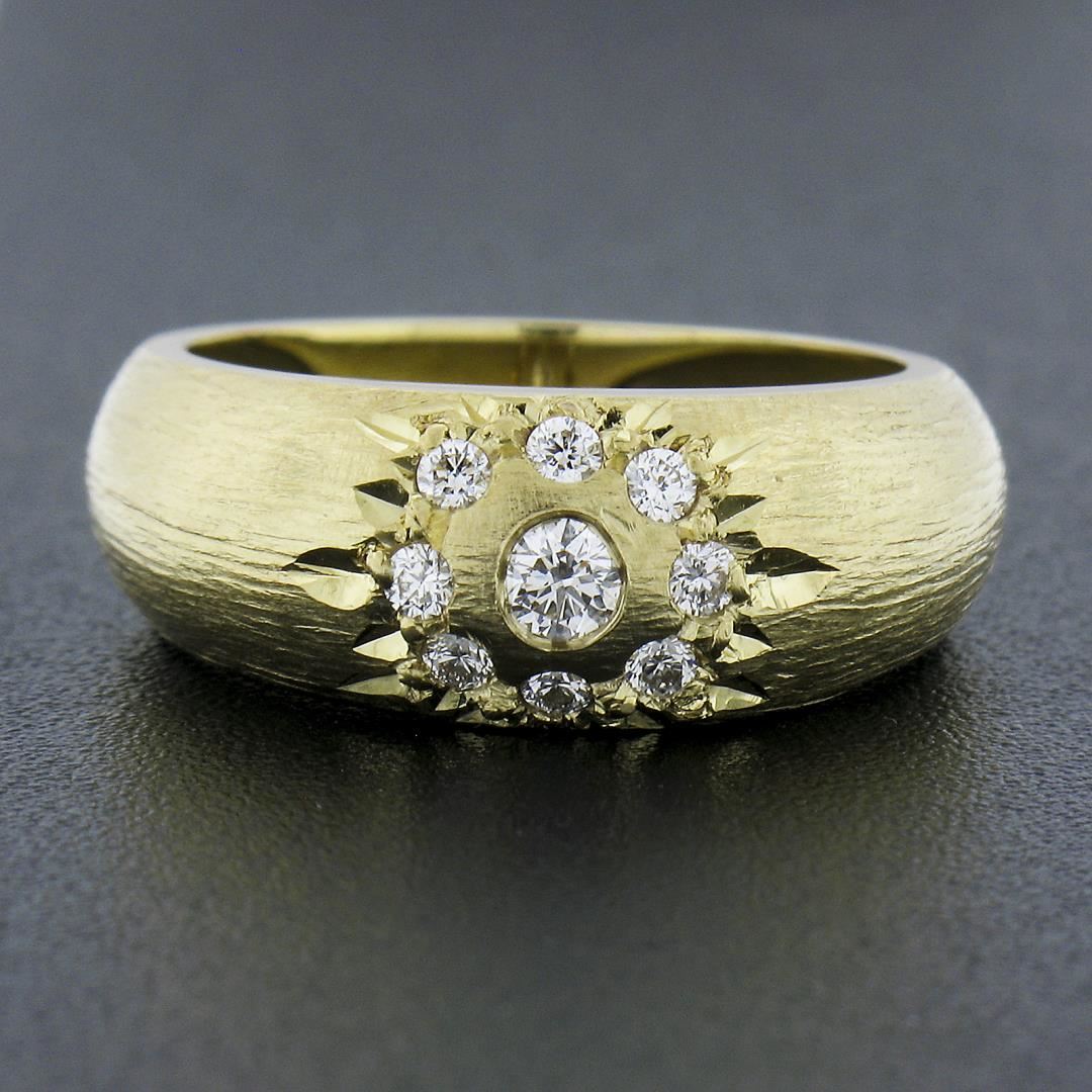 A solid 14k yellow gold cluster band by MAZ, featuring 10 round cut natural diamonds (F/G - VS1/VS2 ; 0.27ctw). The ring is size 6.0, weighs a total of 6.88 grams, and measures 7.5mm wide.