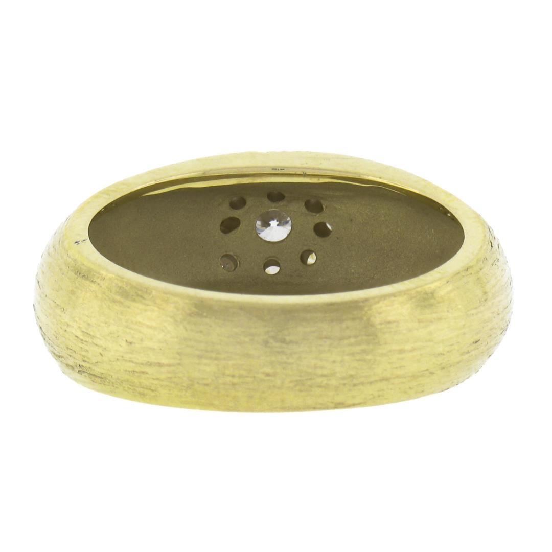 A solid 14k yellow gold cluster band by MAZ, featuring 10 round cut natural diamonds (F/G - VS1/VS2 ; 0.27ctw). The ring is size 6.0, weighs a total of 6.88 grams, and measures 7.5mm wide.