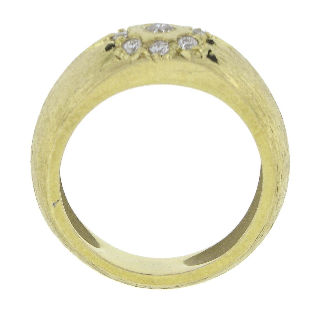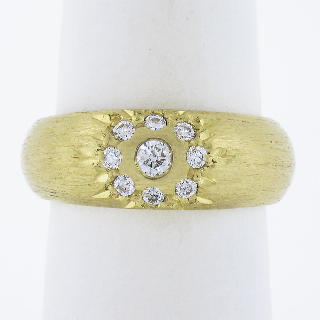 A solid 14k yellow gold cluster band by MAZ, featuring 10 round cut natural diamonds (F/G - VS1/VS2 ; 0.27ctw). The ring is size 6.0, weighs a total of 6.88 grams, and measures 7.5mm wide.