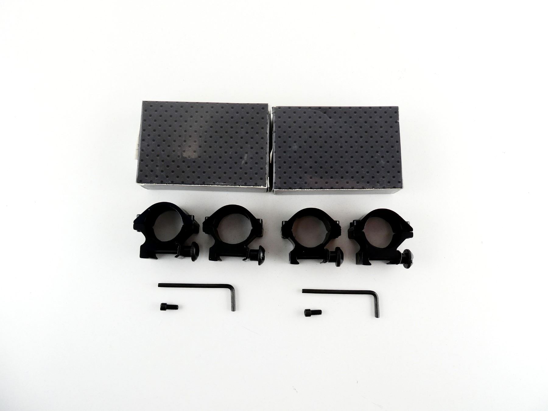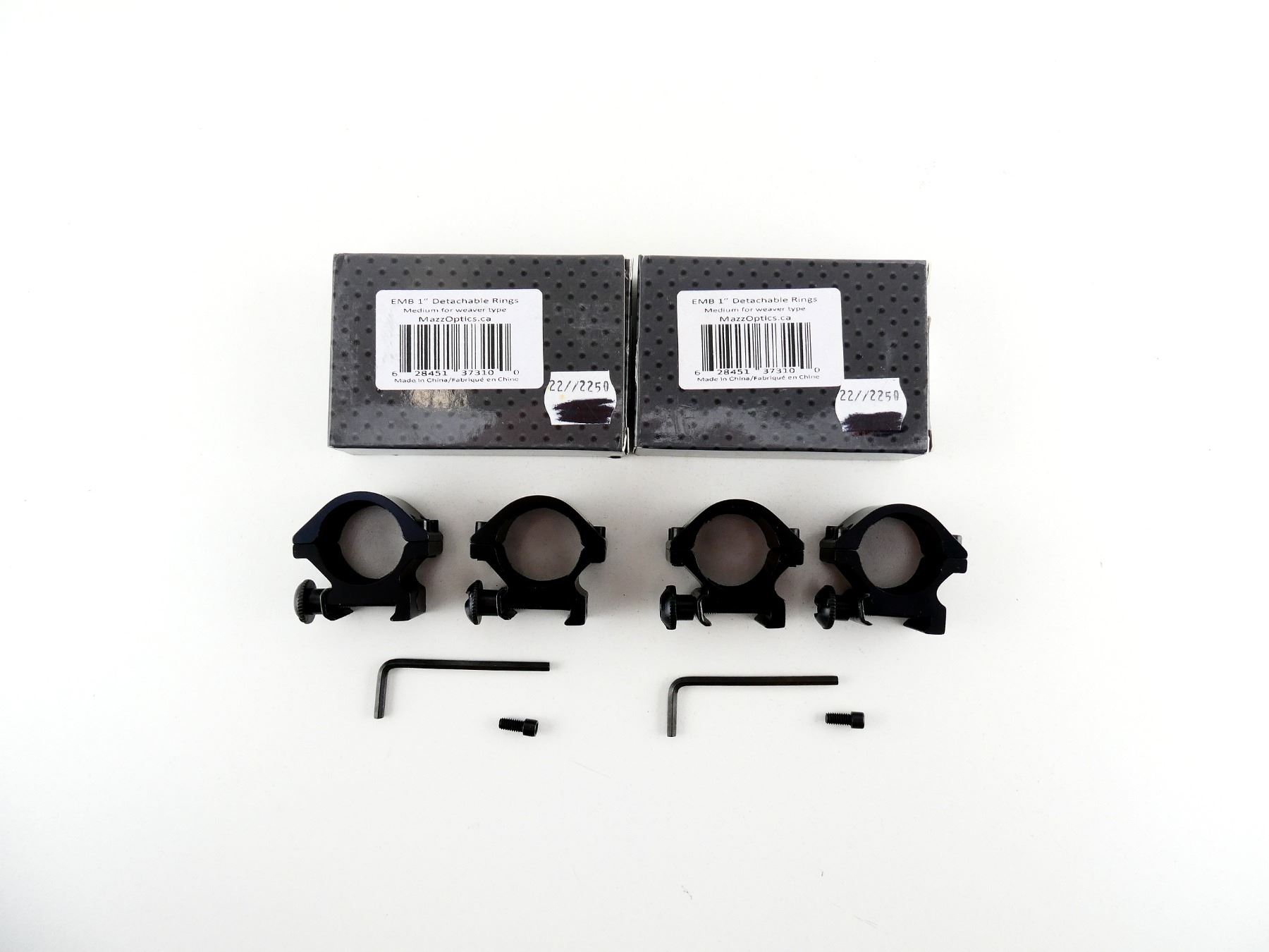 LOT INCLUDES; (2) MED DETACHABLE RINGS, 1" DIAMETER, FOR WEAVER TYPE, MAY NOT BE COMPLETE / PIECES MAY BE MISSING, IN ORIGINAL PACKAGING. MAY REQUIRE FITTING. SEE PHOTOS.