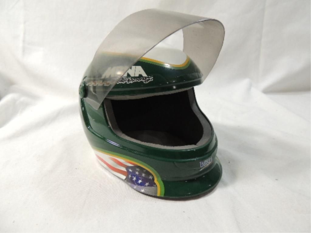 MBNA MOTORSPORTS MINI HELMET FOR AUTOGRAPH. AS SHOWN. SEE PHOTO FOR MORE DETAILS.