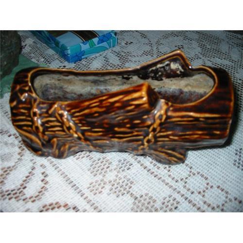 MCCOY LOG AND CHAIN PLANTER IN BROWN GLAZE