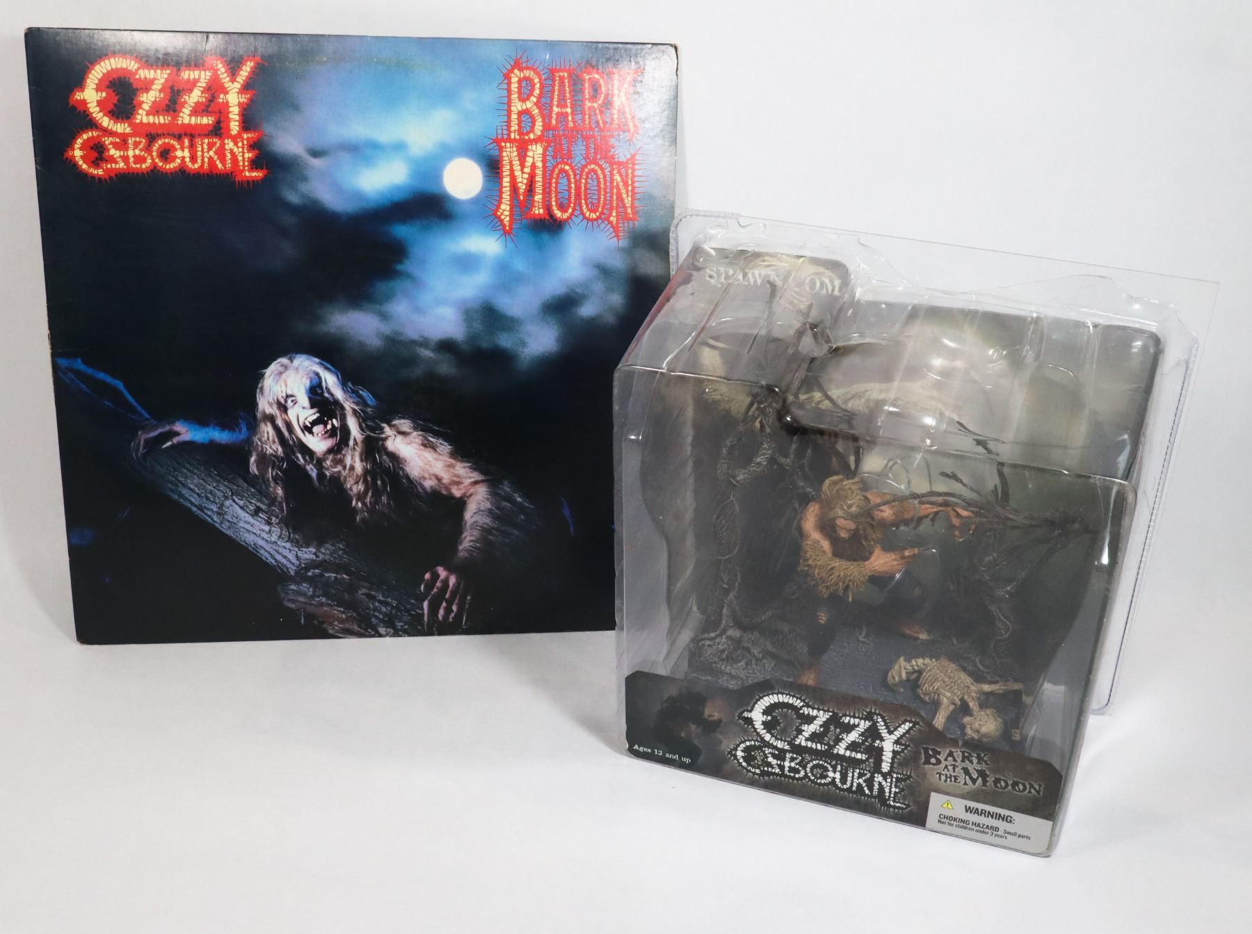 OZZY'S CLASSIC BARK AT THE MOON ALBUM COVER. -COMES WITH ALBUM, NO SCRATCHES- FIGURE IS NEW BUT WAS REMOVED FROM BOX AND PUT BACK IN TO THE BEST OF THE CONSIGNORS ABILITY. SEE DETAILS ON YOUTUBE/ WEB SEARCH.