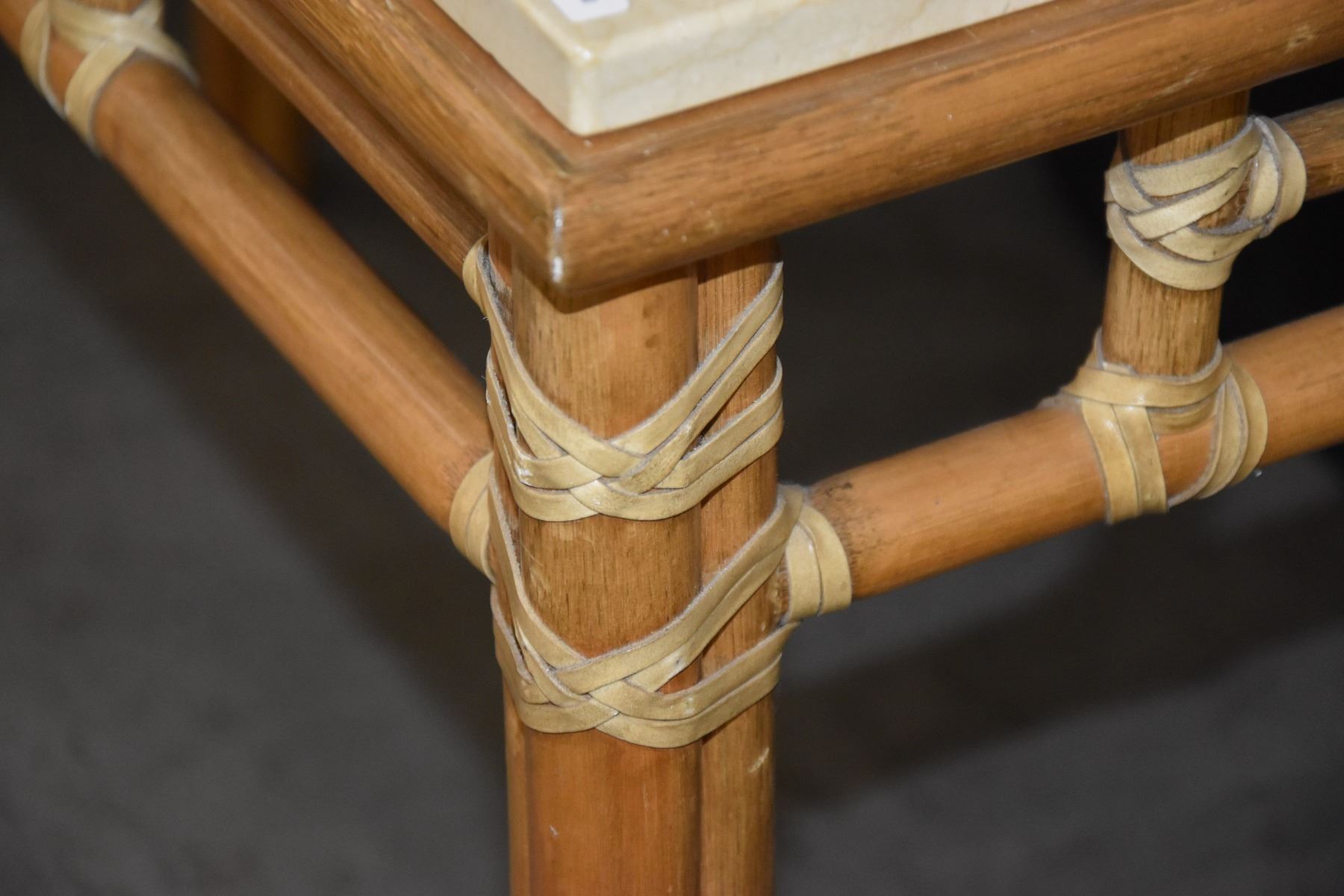 MCGUIRE RATTAN SOFA TABLE W/MARBLE TOP (50" X 20" X 33")