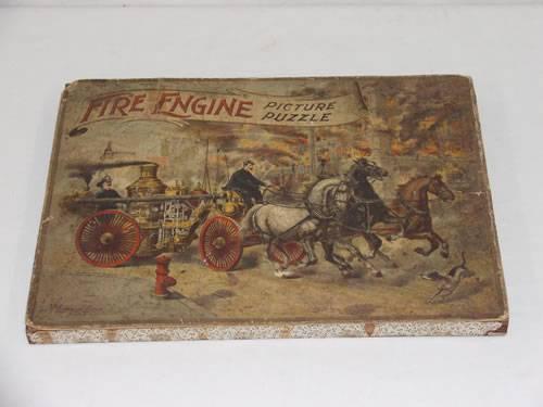 MCLOUGHLIN BROS. NEW YORK WOODEN FIRE ENGINE PICTURE PUZZLE W/ ORIGINAL BOX-COMPLETE W/ ONLY 1 SMALL BROKEN PC. MISSING, WEAR and LOSSES TO BOTH BOX and PUZZLE;