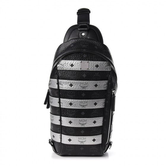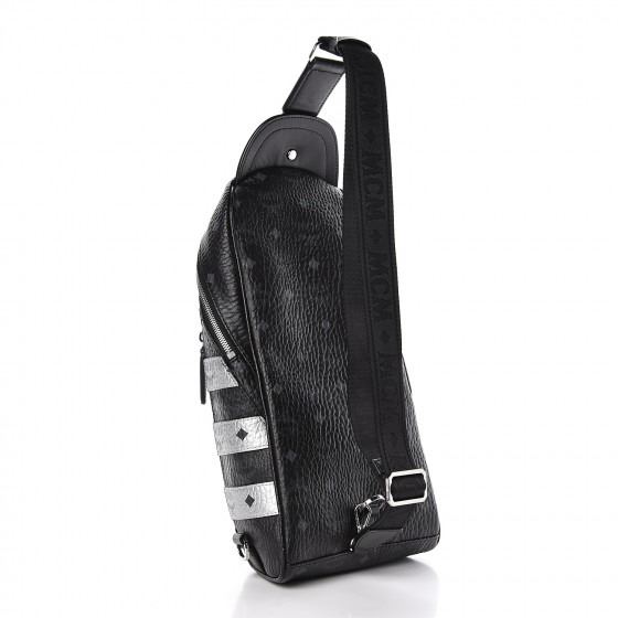 MCM Visetos Spot Medium Sling Bag Black Silver