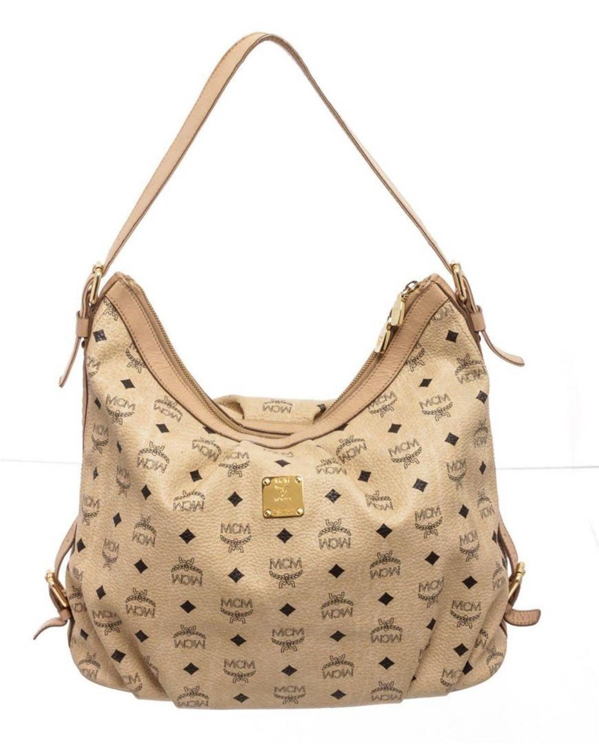 MCM Beige Leather Hobo Bag with silver-tone hardware, trim, three interior compartments pockets, canvas lining, top handle, leather shoulder strap, and zip closure. CONDITION: Pre-Owned Good overall, please see photographs for detail.