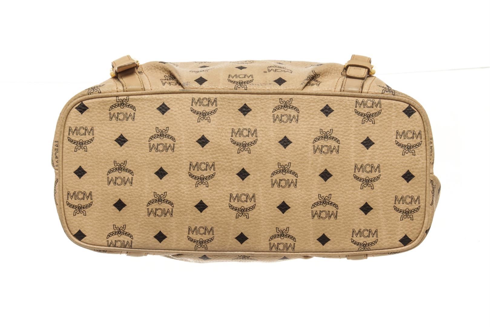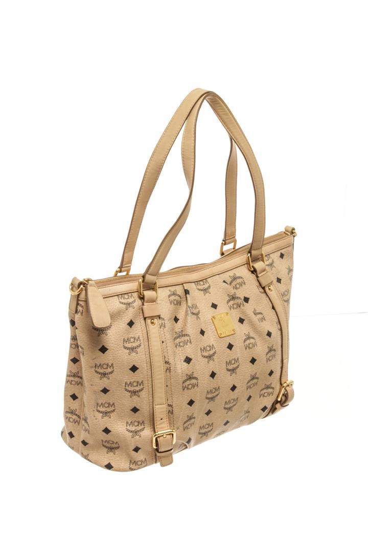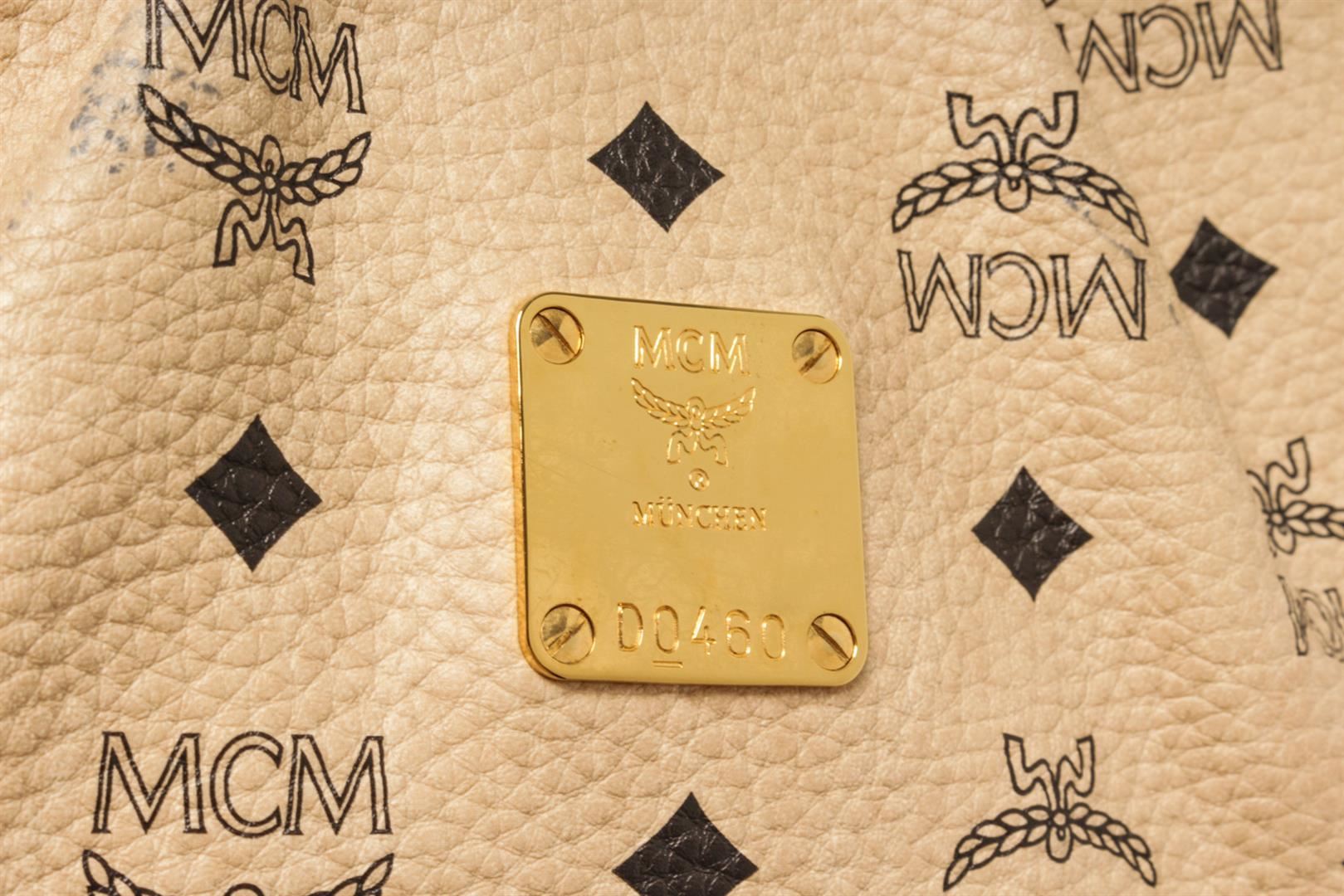 One MCM Beige Leather Visetos Shoulder Bag. Item is sold AS-IS. All available information is listed in the description and shown in the photo. Gucci Black Leather Small Miss Hobo Bag with this shoulder strap, gold tone hardware, detachable adjustable strap, MCM satin lining, two interior slip pockets, zipper closure. Height: 8.1" Width: 10.4" Depth: 4.5", Handle Drop: / 20.57 x 26.41 x 11.43 Cm