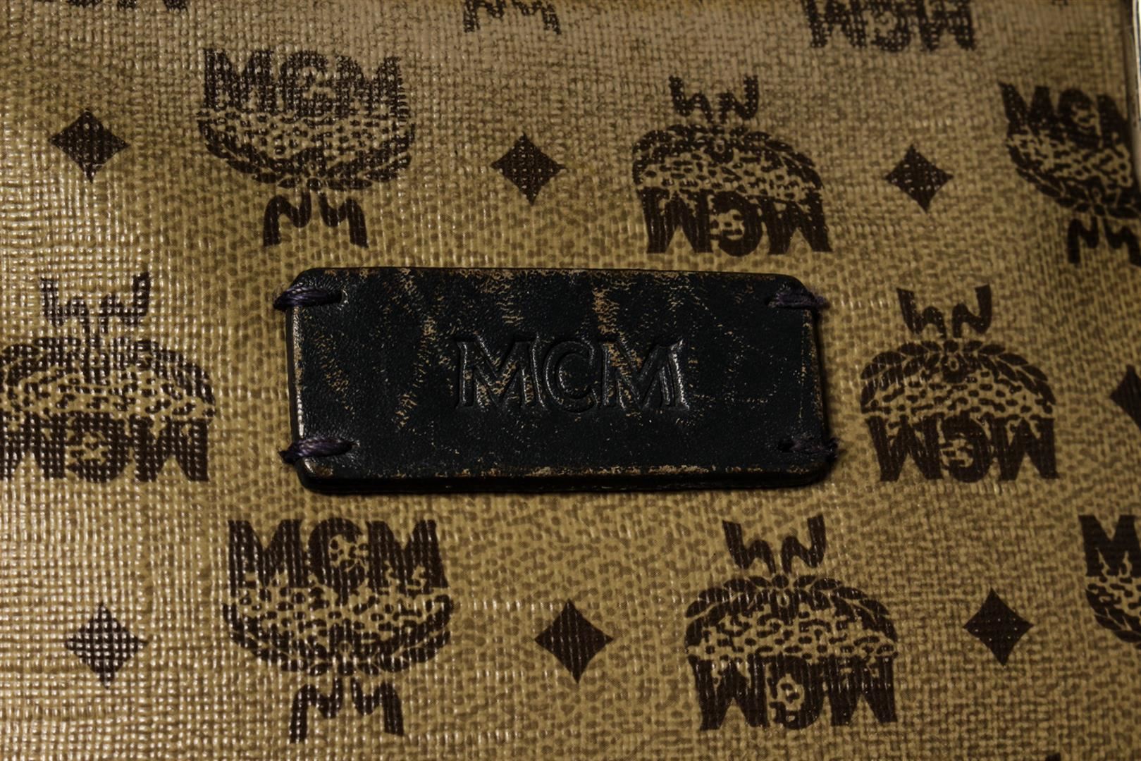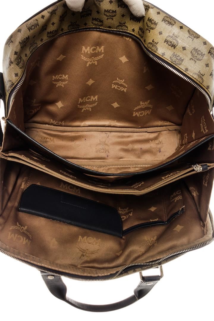 MCM Marble Briefcase bag features a beige Monogram Visetos coated canvas with dark brown leather trim, gold-tone hardware, a two-way zip closure safely secures your laptop, tablet, and documents inside, the dark brown jacquard logo canvas lining and three