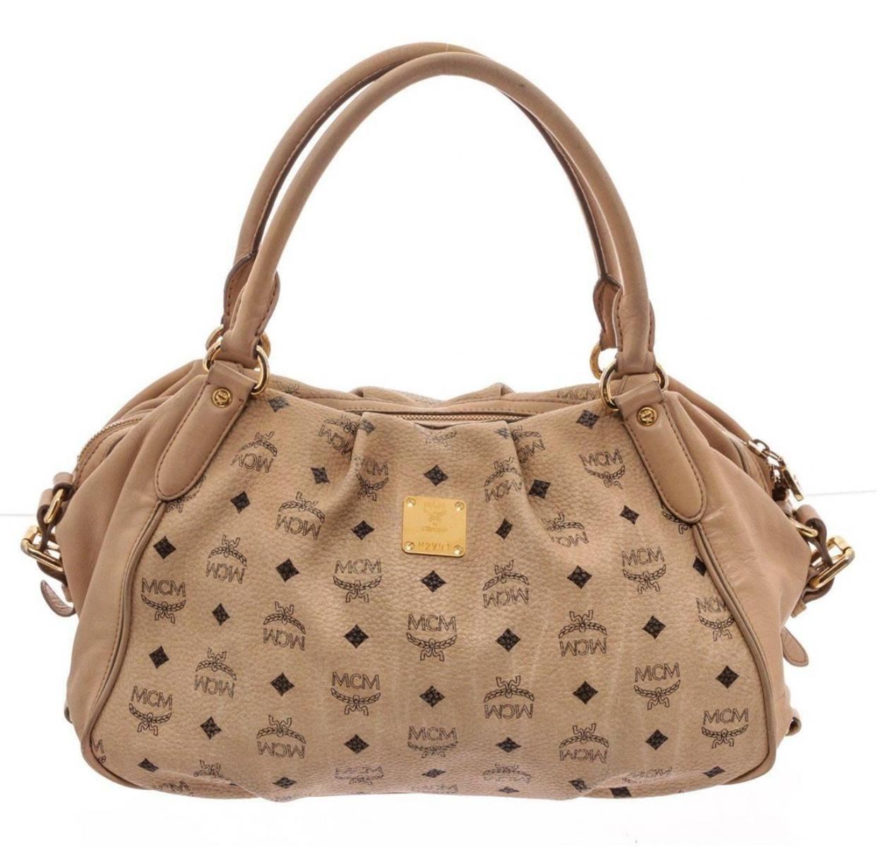 MCM beige Vesitos coated canvas shoulder bag with leather trim and top handles, gold-tone hardware, three interior pockets; one with zip closure, and overall zip closure at top. Measurements: Length: 12 in / 30 cm Width: 19.5 in / 50 cm 5.75 in / 15 cmCONDITION: Pre-Owned Good overall, please see photographs for detail.