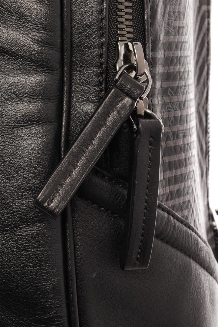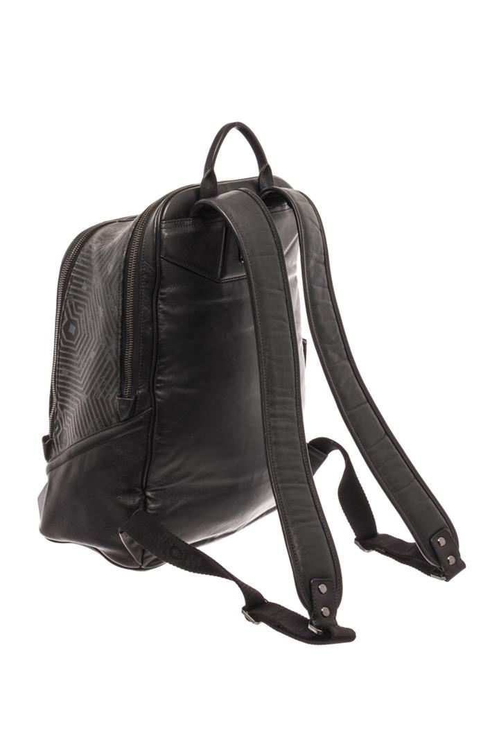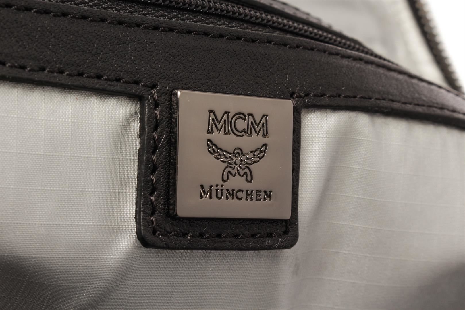 MCM Black Leather Backpack. All available information is listed in the description and shown in the photos. MCM Black Leather Backpack with silver-tone hardware, zippered pocket compartment, zipper closure at the top.