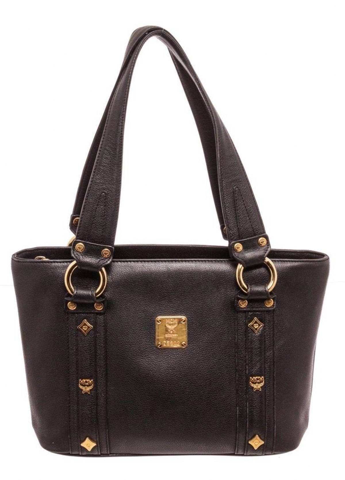 Black nappa leather tote bag with gold-tone hardware, red canvas lining, two interior slip pockets, one zip pocket, and top zip closure. CONDITION: Pre-Owned Good overall, please see photographs for detail.