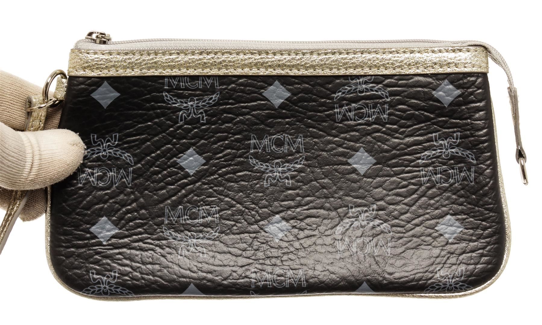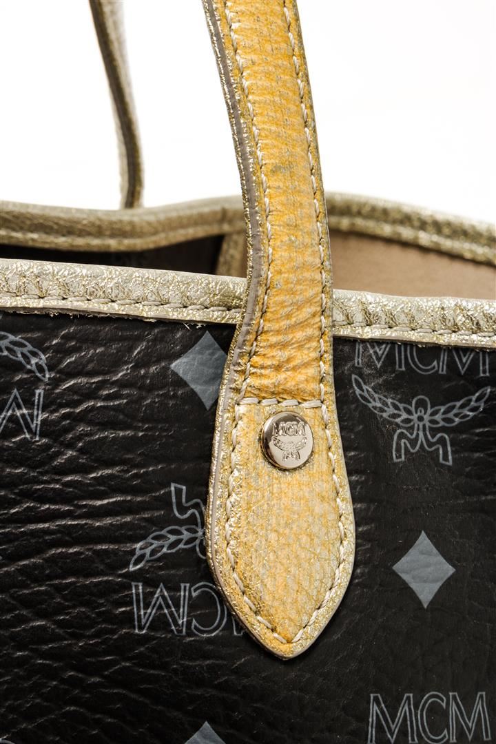One MCM Black Monogram Visetos Logo Lion Liz Shopper Tote Bag. Item is sold AS-IS. All available information is listed in the description and shown in the photo. mcm black monogram visetos logo lion liz shopper tote bag with silver tone hardware. Please note: some interior pen staining. Height: 11 in (27.94 cm), Width: 6 in (15.24 cm), Length: 16 in (40.64 cm)