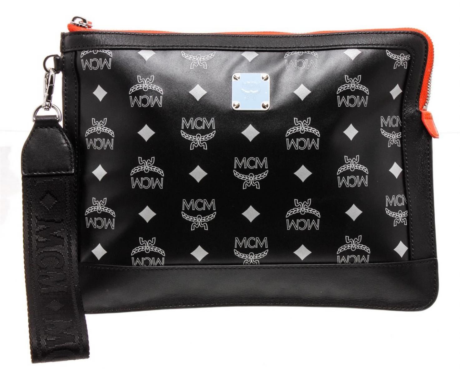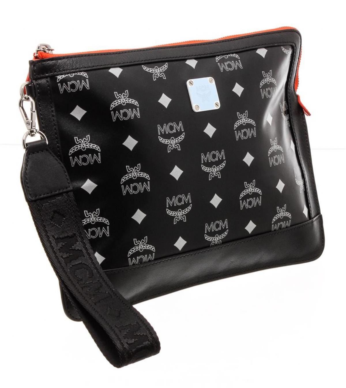 MCM Gray Nylon Resnick Ipad Mini Case keeps your iPad safe from the elements, in style. A classic style that is also waterproof. Features a curved zip closure, lightly padded interior, an open pocket, removable wristlet, cobalt hardware, mesh lining.