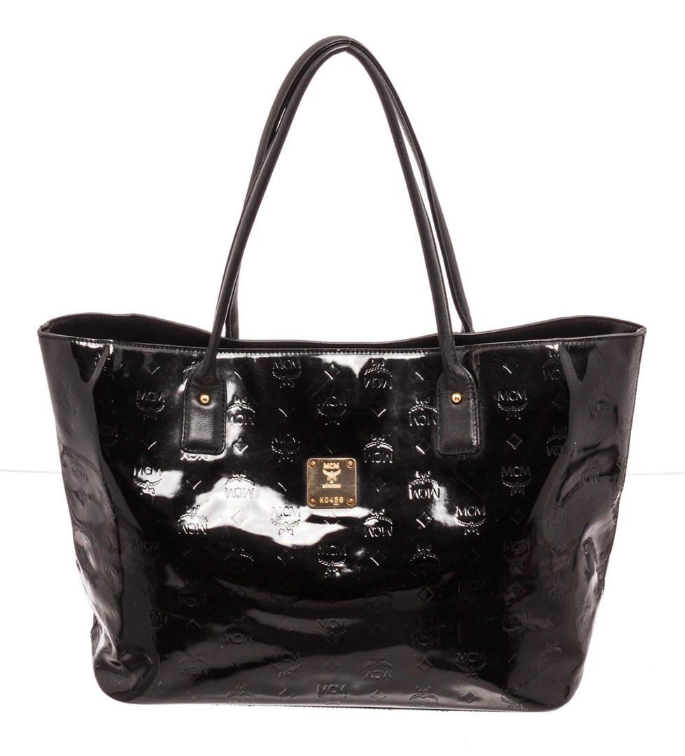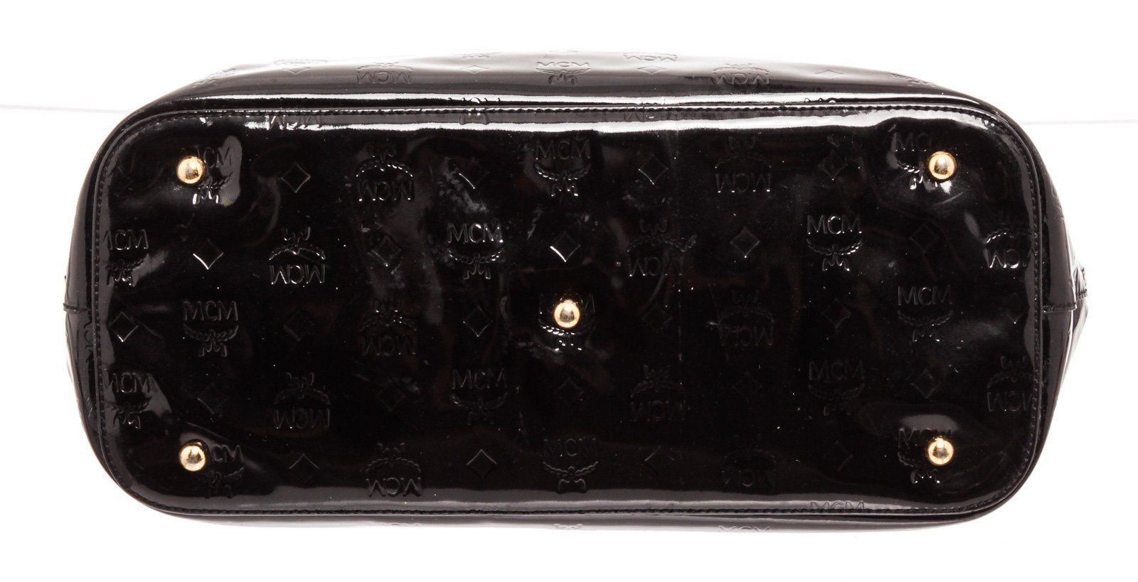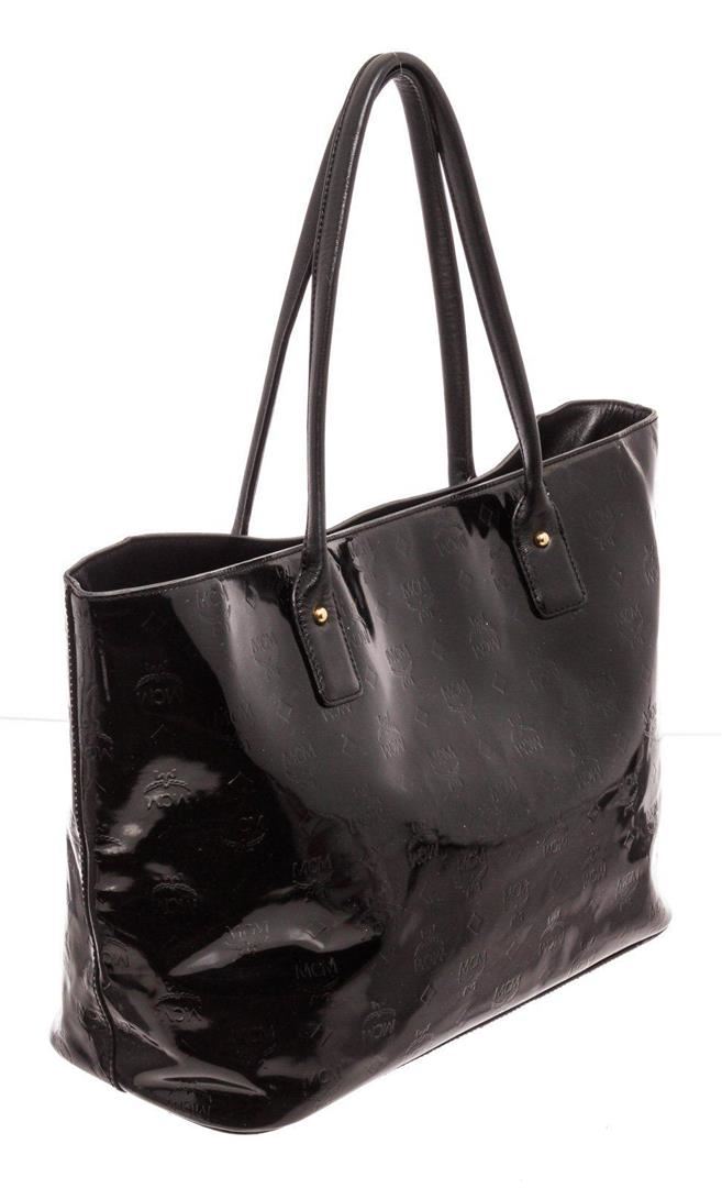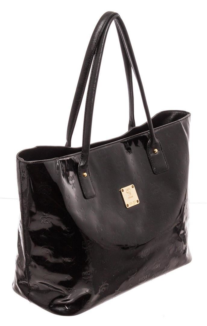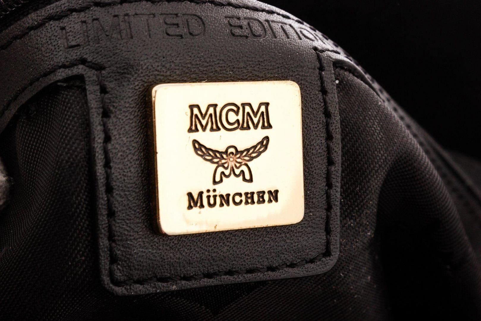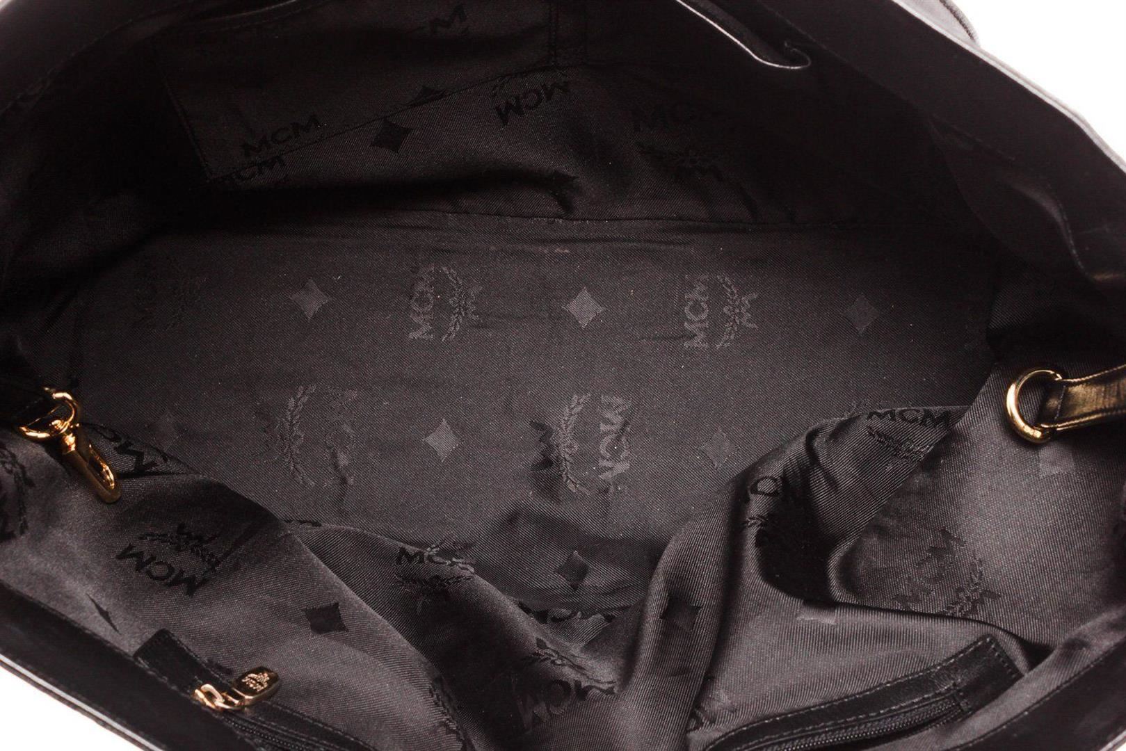 MCM Black Visetos Shopper shoulder Bag with gold-tone hardware, trim Visetos leather, three interior compartments pocket, shoulder strap and zipper closure.