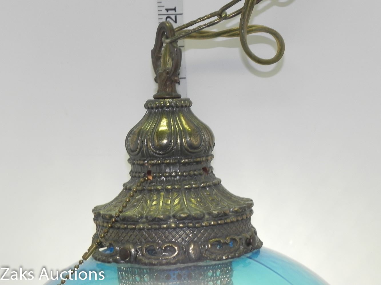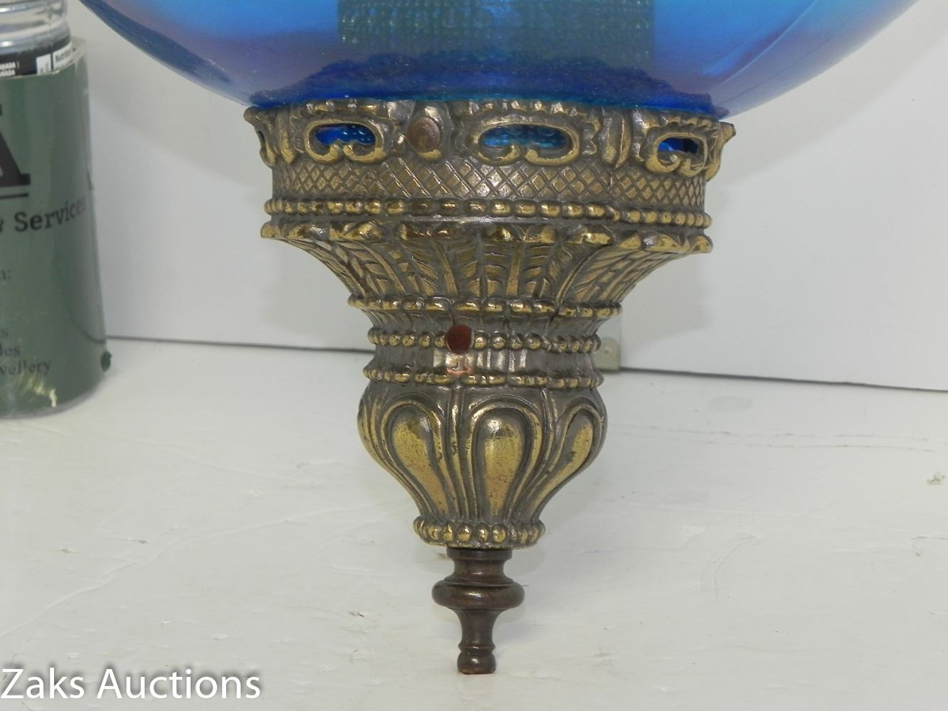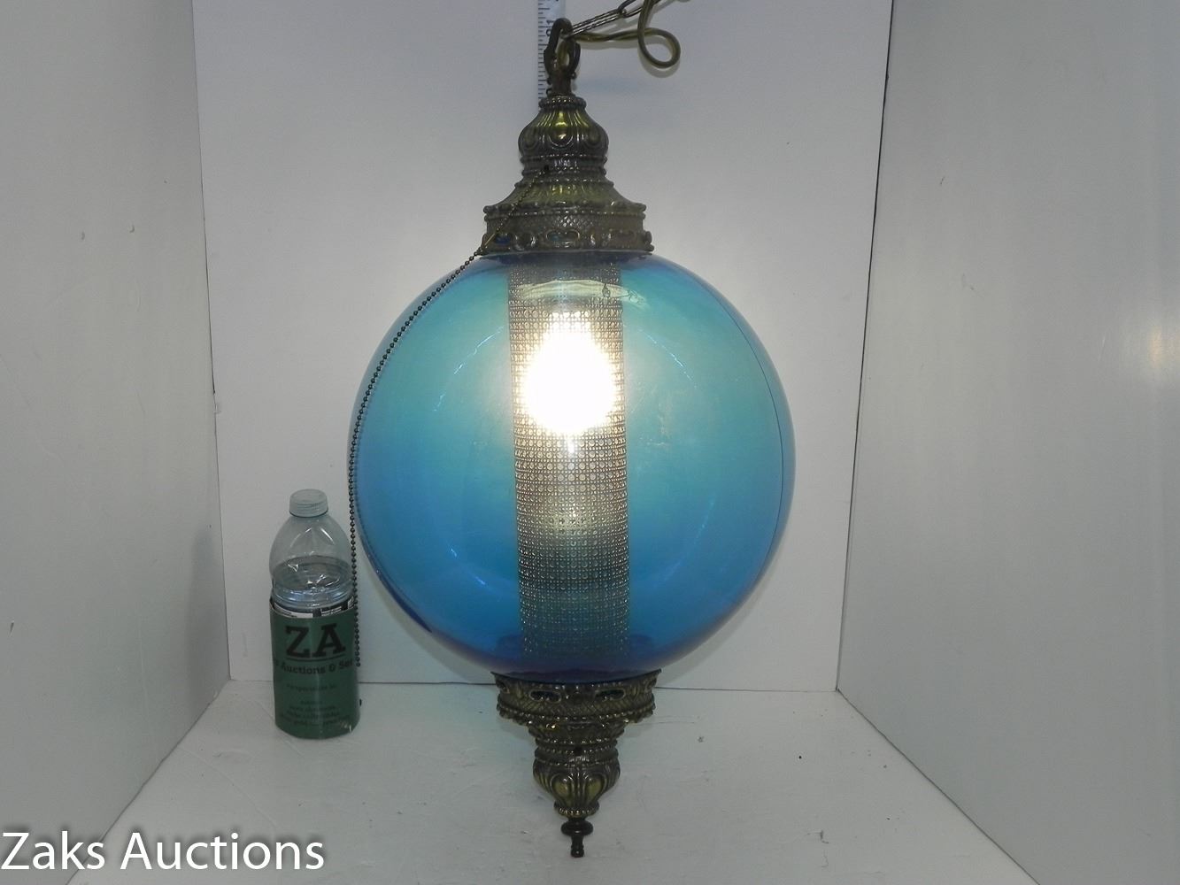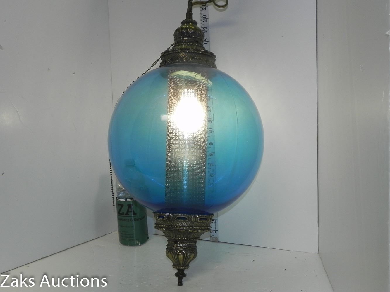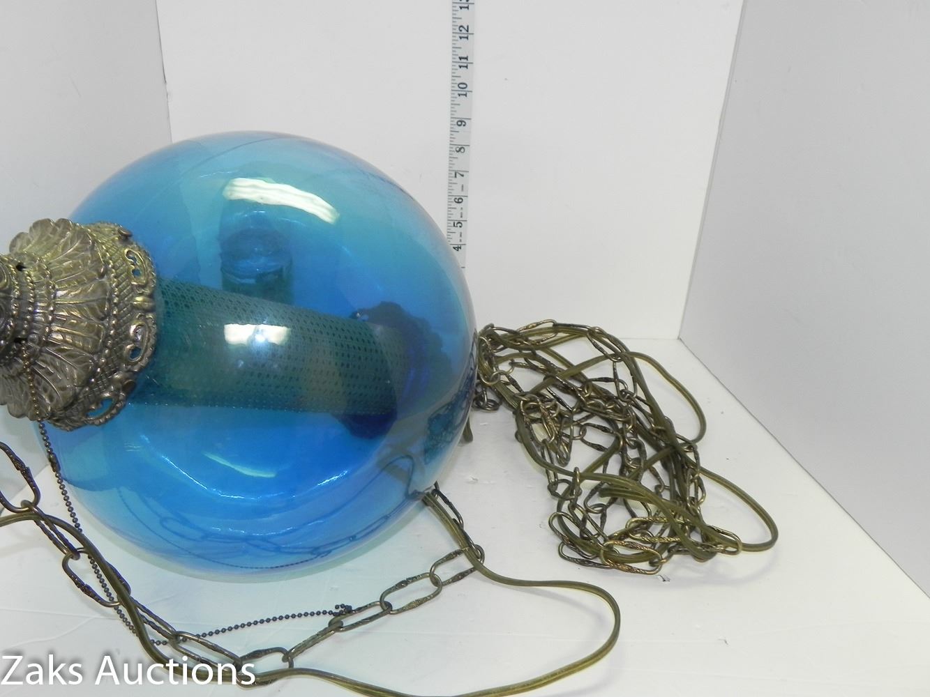 MCM Blue Glass Globe Swag Pendant Light (working)