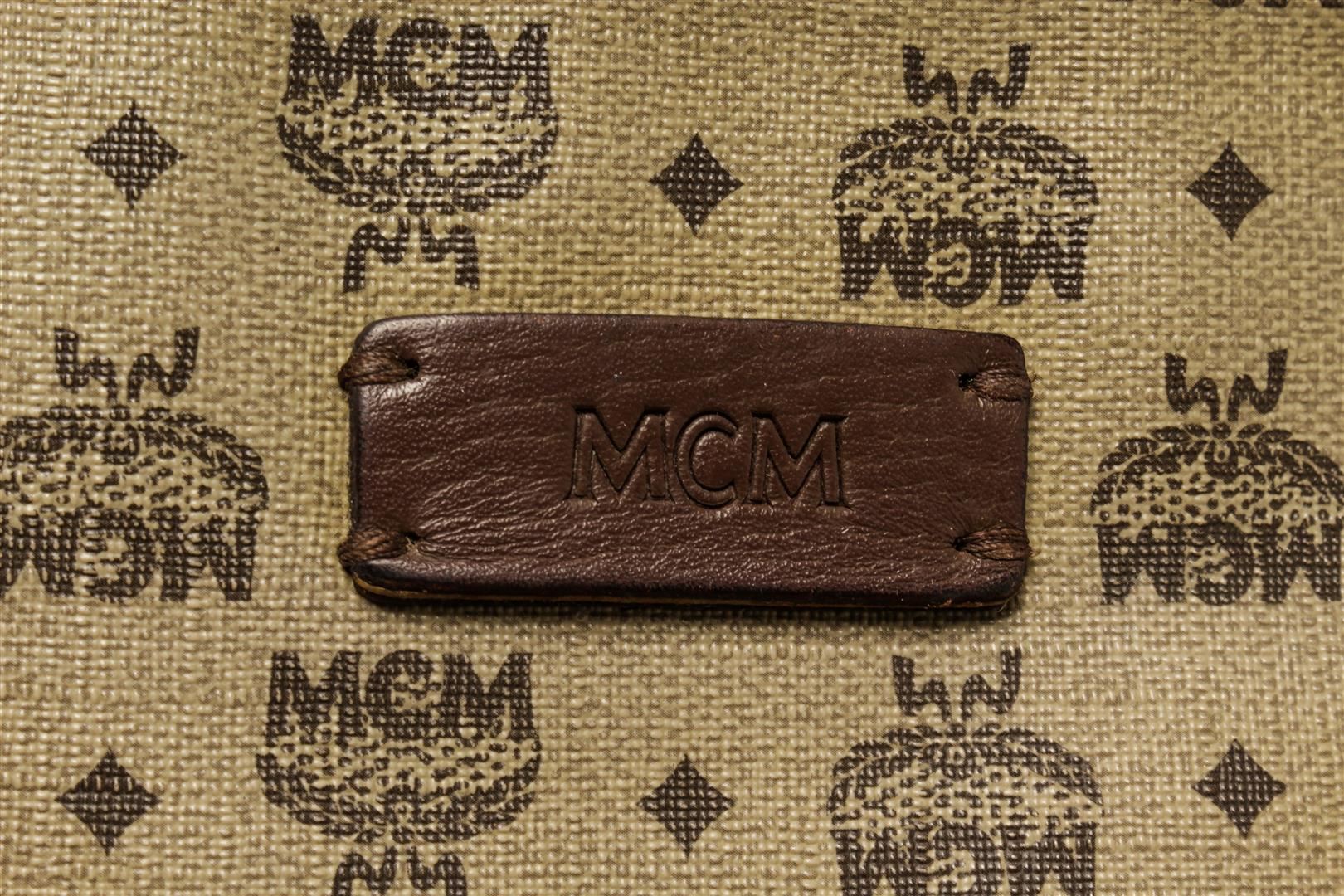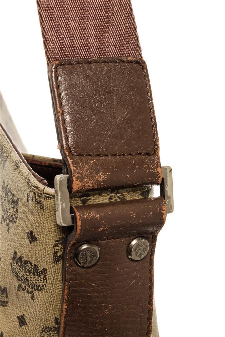 One MCM Brown Coated Canvas Crossbody Bag. Item is sold AS-IS. All available information is listed in the description and shown in the photo. MCM Brown Coated Canvas Crossbody Bag with Brown coated canvas crossbody bag with leather trim, silver-tone hardware, interior slip pockets; one with zip closure, adjustable shoulder strap, and top zipper closure. 10.5"L x 2.25"W x 10"H / 26.67 x 5.715 x 25.4 Cm