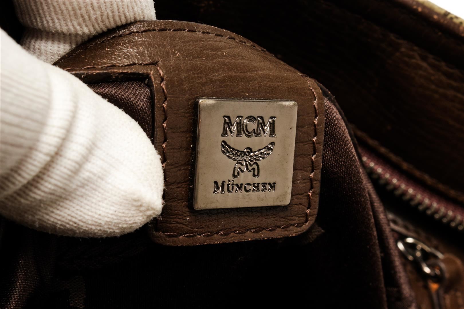 One MCM Brown Coated Canvas Crossbody Bag. Item is sold AS-IS. All available information is listed in the description and shown in the photo. MCM Brown Coated Canvas Crossbody Bag with Brown coated canvas crossbody bag with leather trim, silver-tone hardware, interior slip pockets; one with zip closure, adjustable shoulder strap, and top zipper closure. 10.5"L x 2.25"W x 10"H / 26.67 x 5.715 x 25.4 Cm