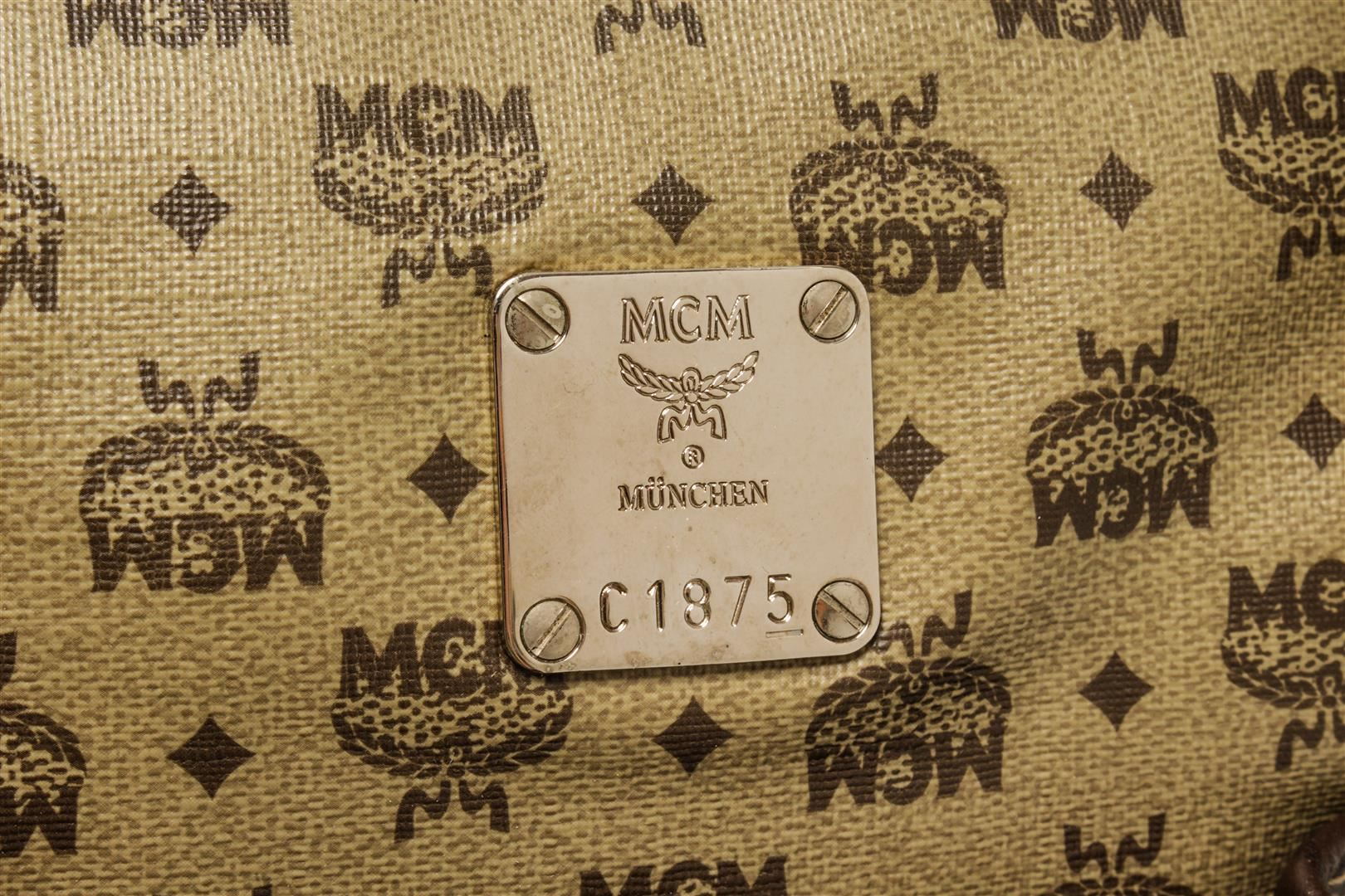 One MCM Brown Monogram Boston Bag. Item is sold AS-IS. All available information is listed in the description and shown in the photo. MCM Brown Monogram Boston Bag with exterior: minor wear, interior: dirt or marks, hardware: minor scratches, zip inner pocket, slip inner pockets, adjustable & detachable handles, bottom studs, lining material: satin, double zip closure 12.25"L x 5"W x 9"H / 31.115 x 12.7 x 22.86 Cm, Handle Drop: 9"