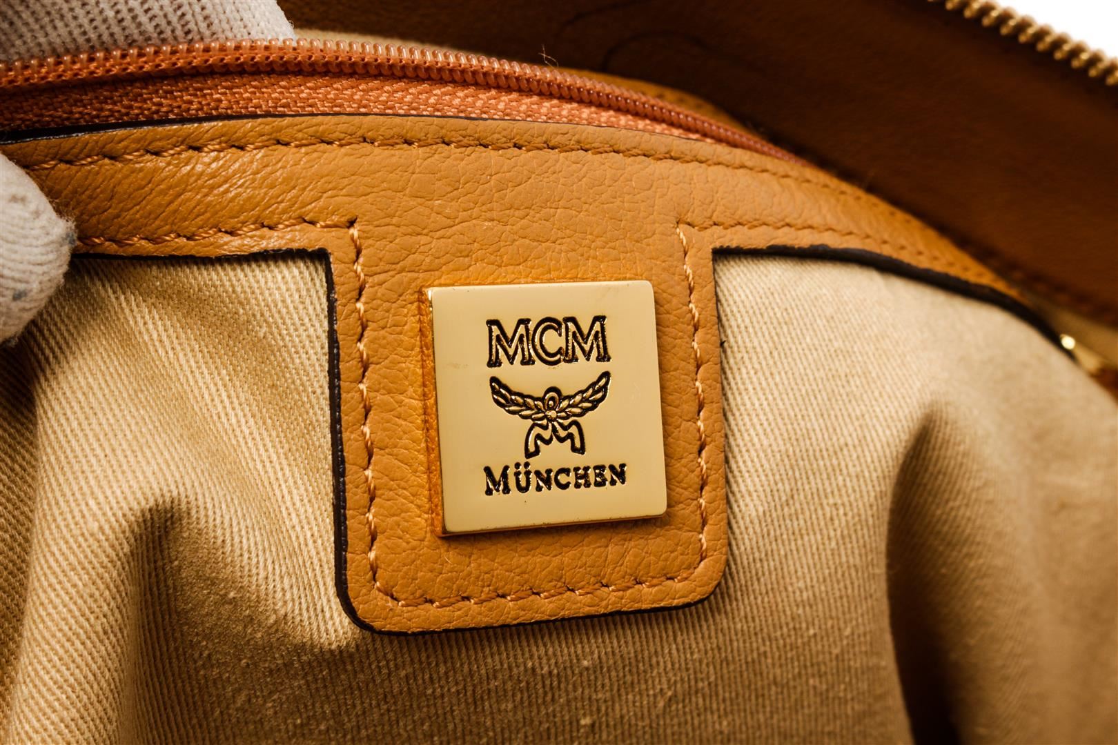 MCM Brown Visetos Essentials Shopper Tote Bag. All available information is listed in the description and shown in the photos. MCM Brown Visetos Essentials Shopper Tote Bag with Brown, Printed, Gold-Tone Hardware, Flat Handles & Single Shoulder Strap, Leather Trim Embellishment, Twill Lining & Three Interior Pockets, Zip Closure at Top Height: 9.75", Width: 15", Depth: 6.25" / 24.76 x 38.1 x 15.87 CM