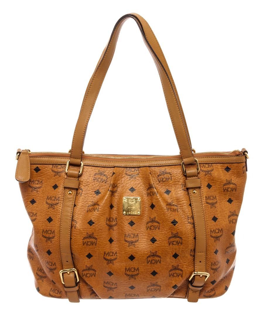 MCM Brown Visetos Essentials Shopper Tote Bag. All available information is listed in the description and shown in the photos. MCM Brown Visetos Essentials Shopper Tote Bag with Brown, Printed, Gold-Tone Hardware, Flat Handles & Single Shoulder Strap, Leather Trim Embellishment, Twill Lining & Three Interior Pockets, Zip Closure at Top Height: 9.75", Width: 15", Depth: 6.25" / 24.76 x 38.1 x 15.87 CM