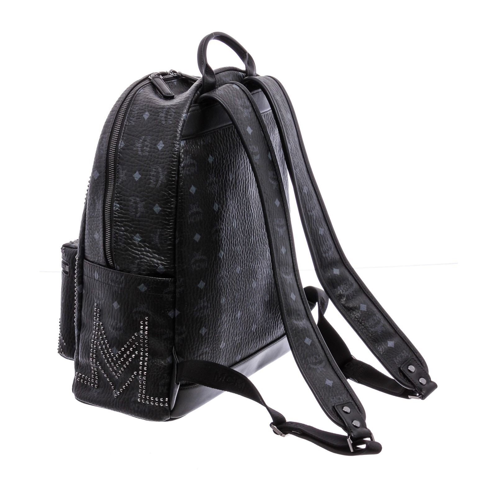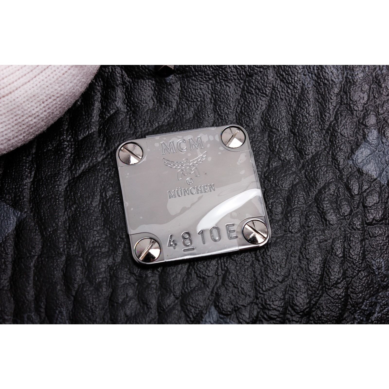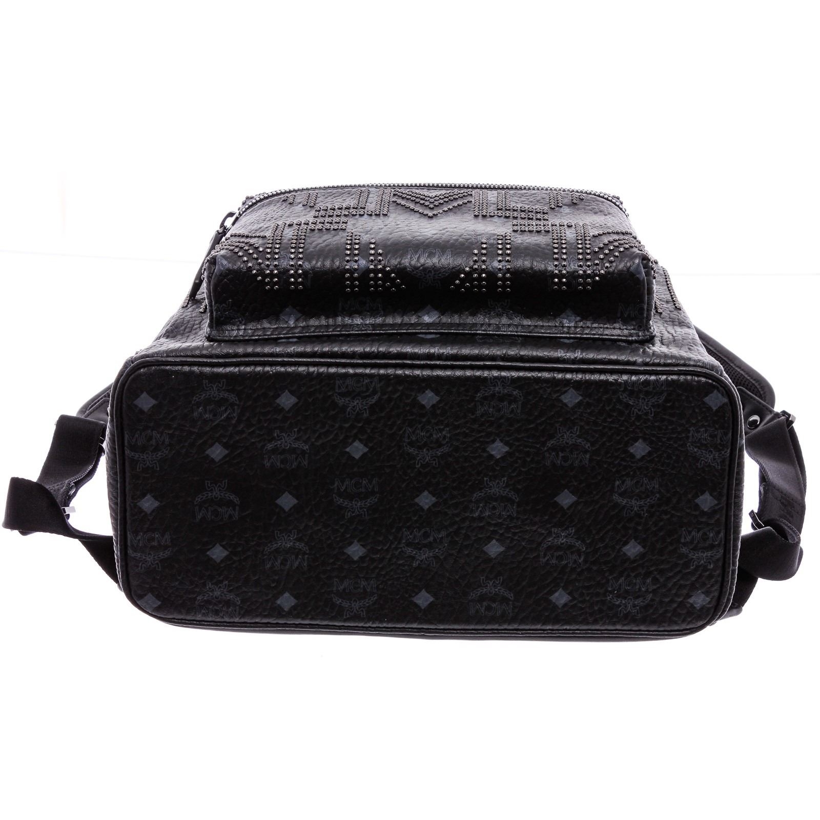 Style: MCM Black Visetos Canvas Leather Medium Studded Backpack