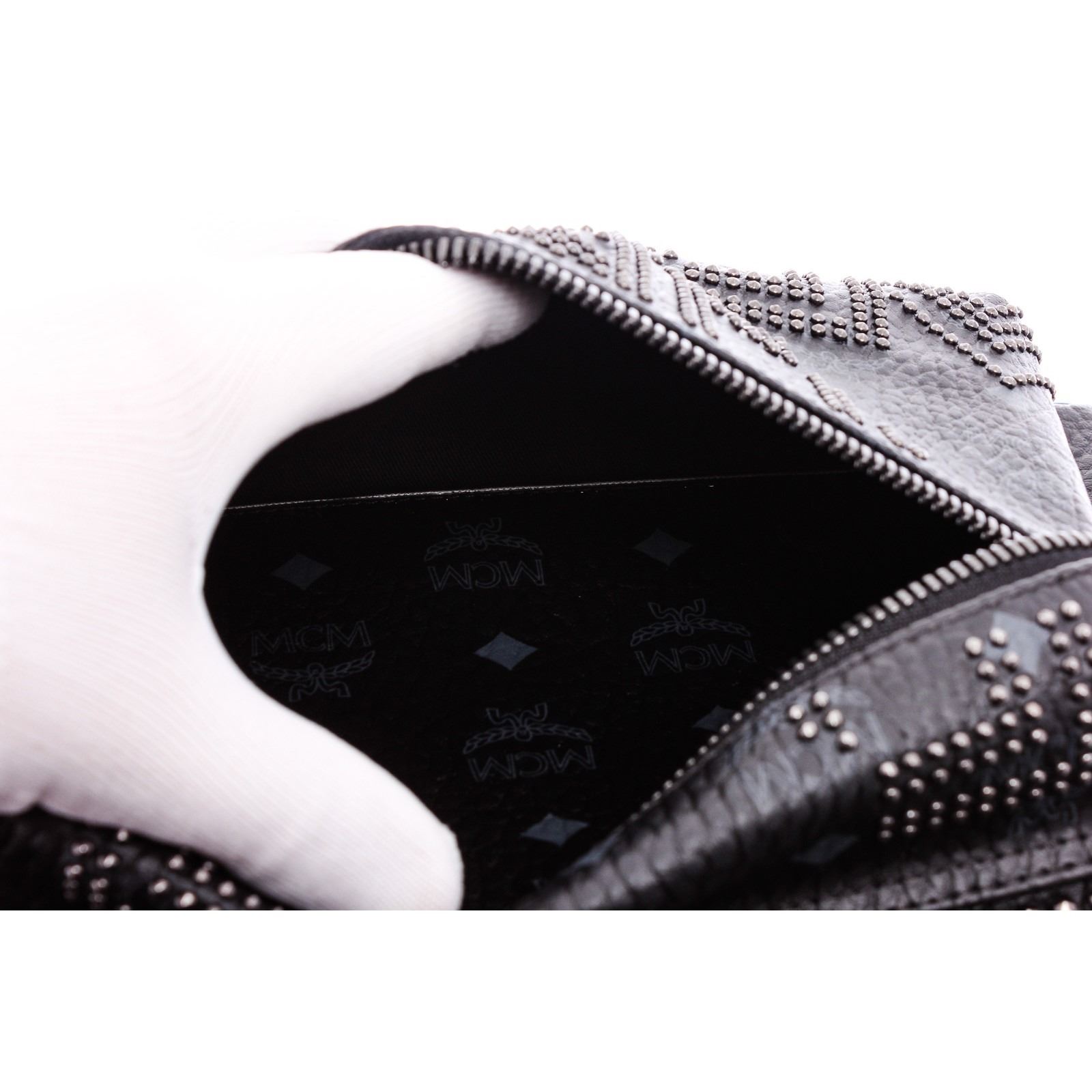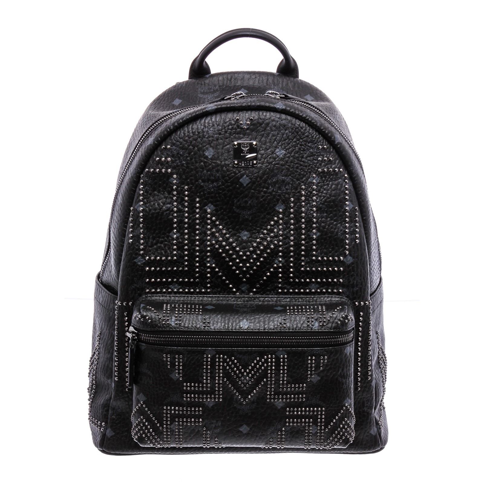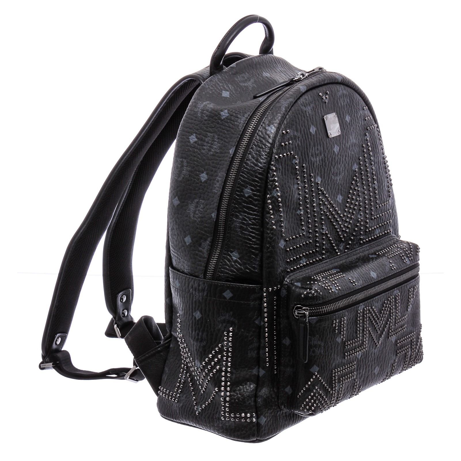 Style: MCM Black Visetos Canvas Leather Medium Studded Backpack