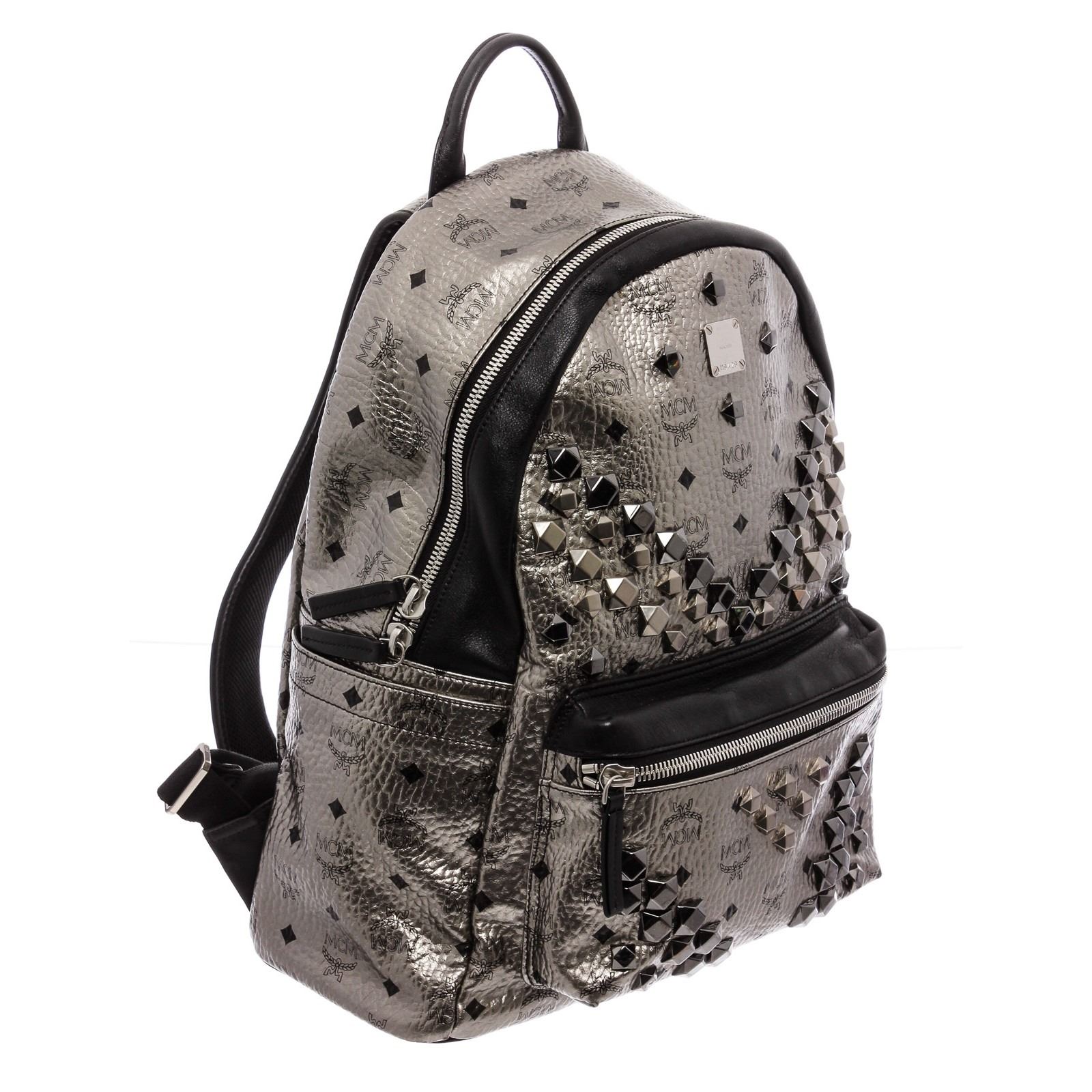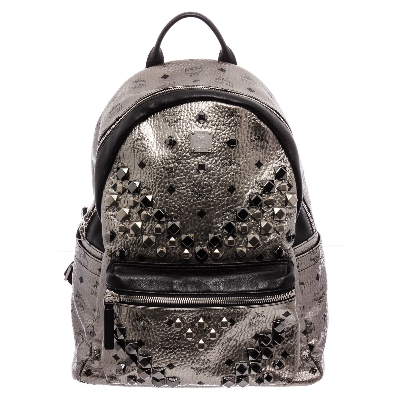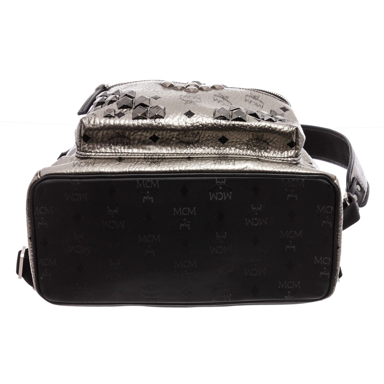 Style: MCM Metallic Silver Visetos Coated Canvas Studded Stark Backpack