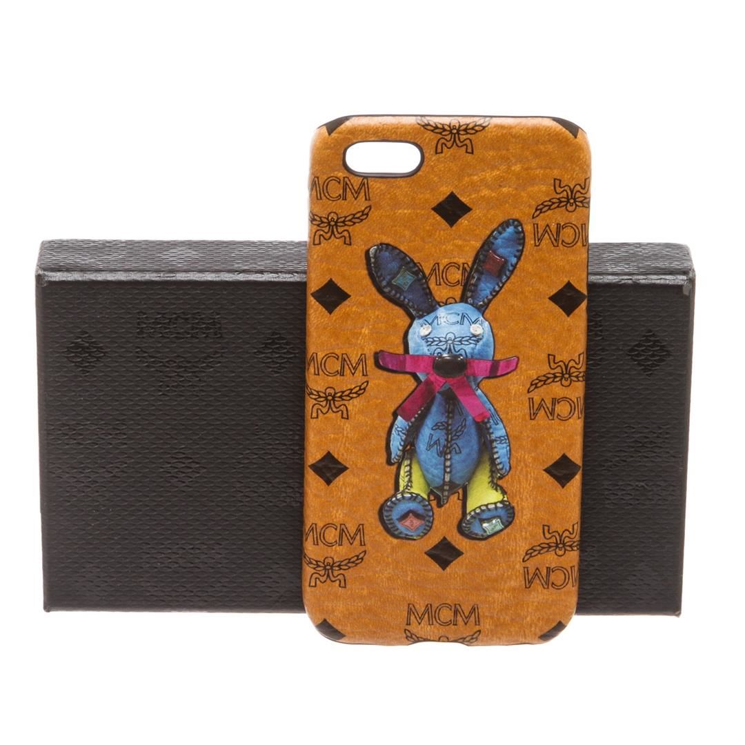 Crafted out of cognac visetos coated canvas with a blue graphic rabbit. Dimensions = Length: 5"/12cm Width: 2"/5cm . Item is pre-owned.