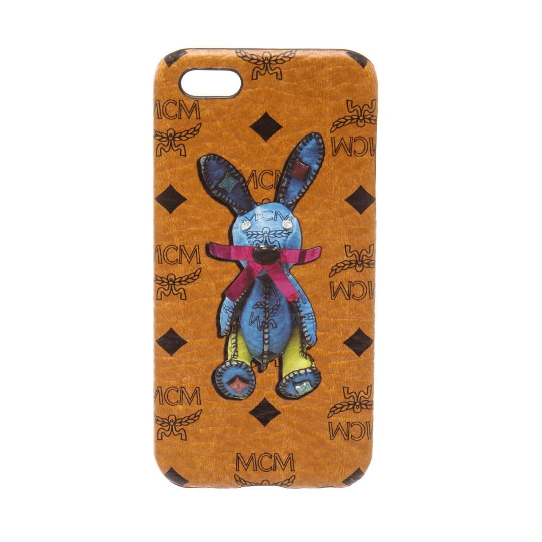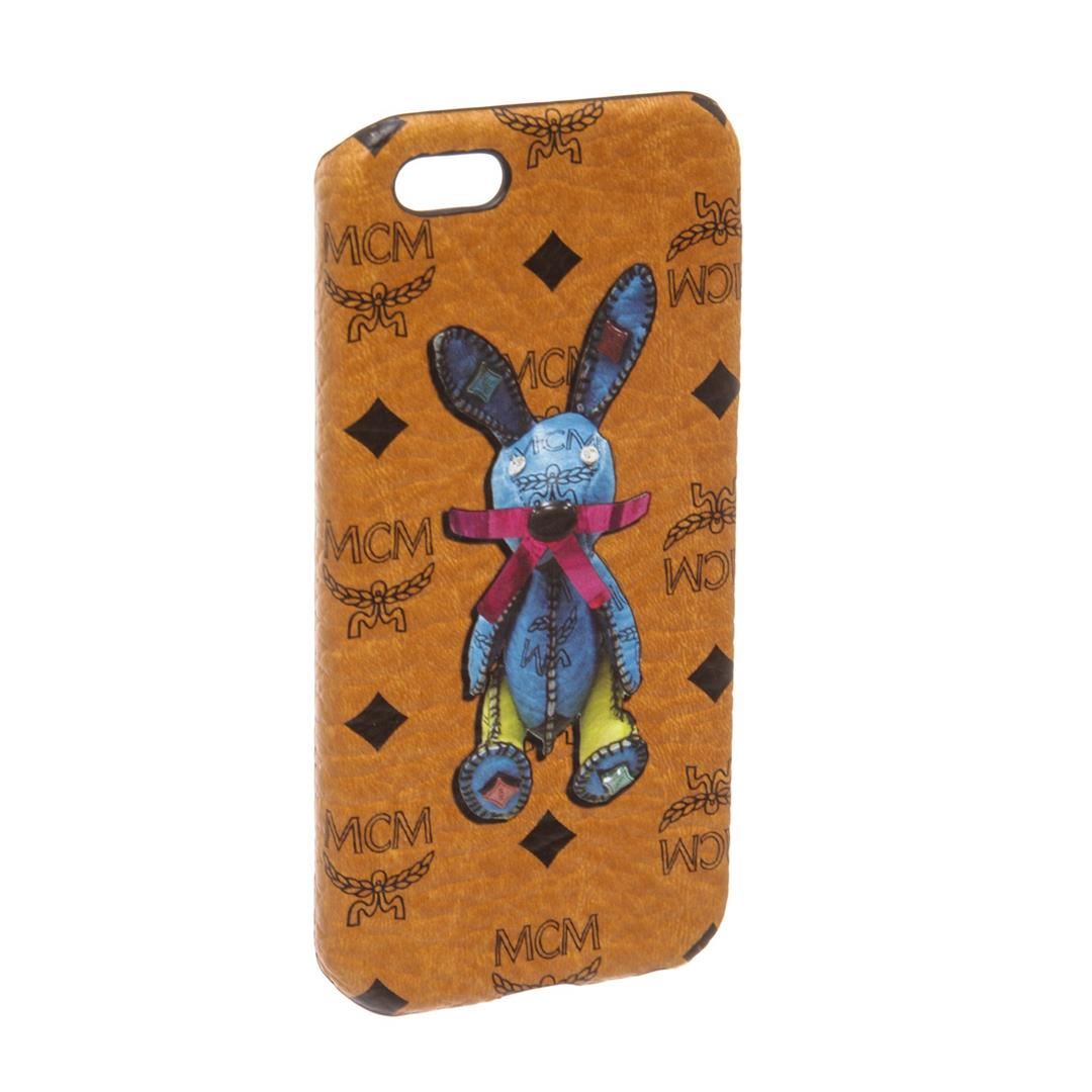 Crafted out of cognac visetos coated canvas with a blue graphic rabbit. Dimensions = Length: 5"/12cm Width: 2"/5cm . Item is pre-owned.