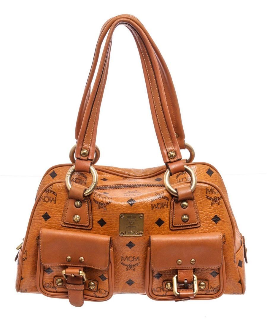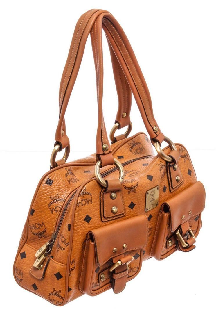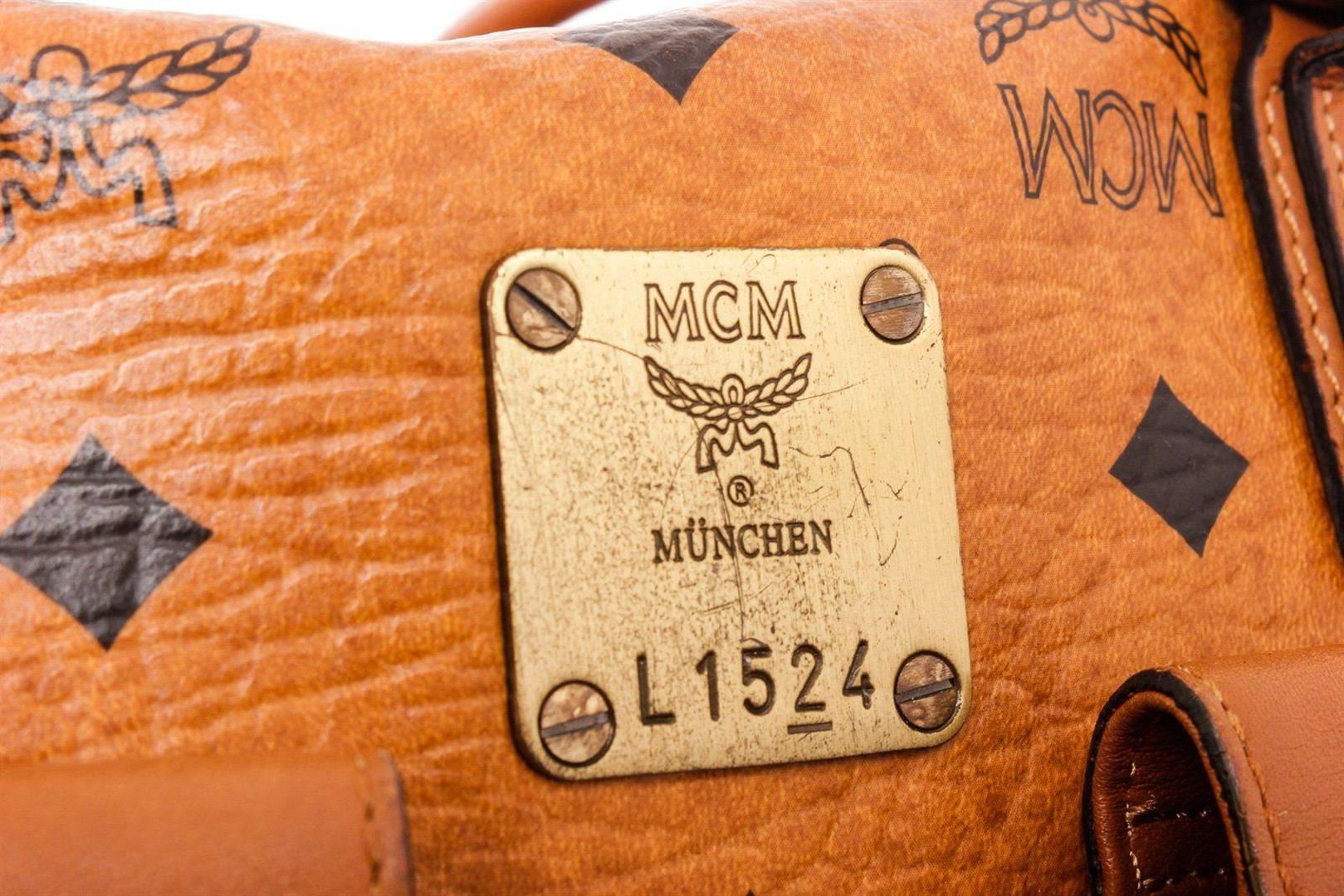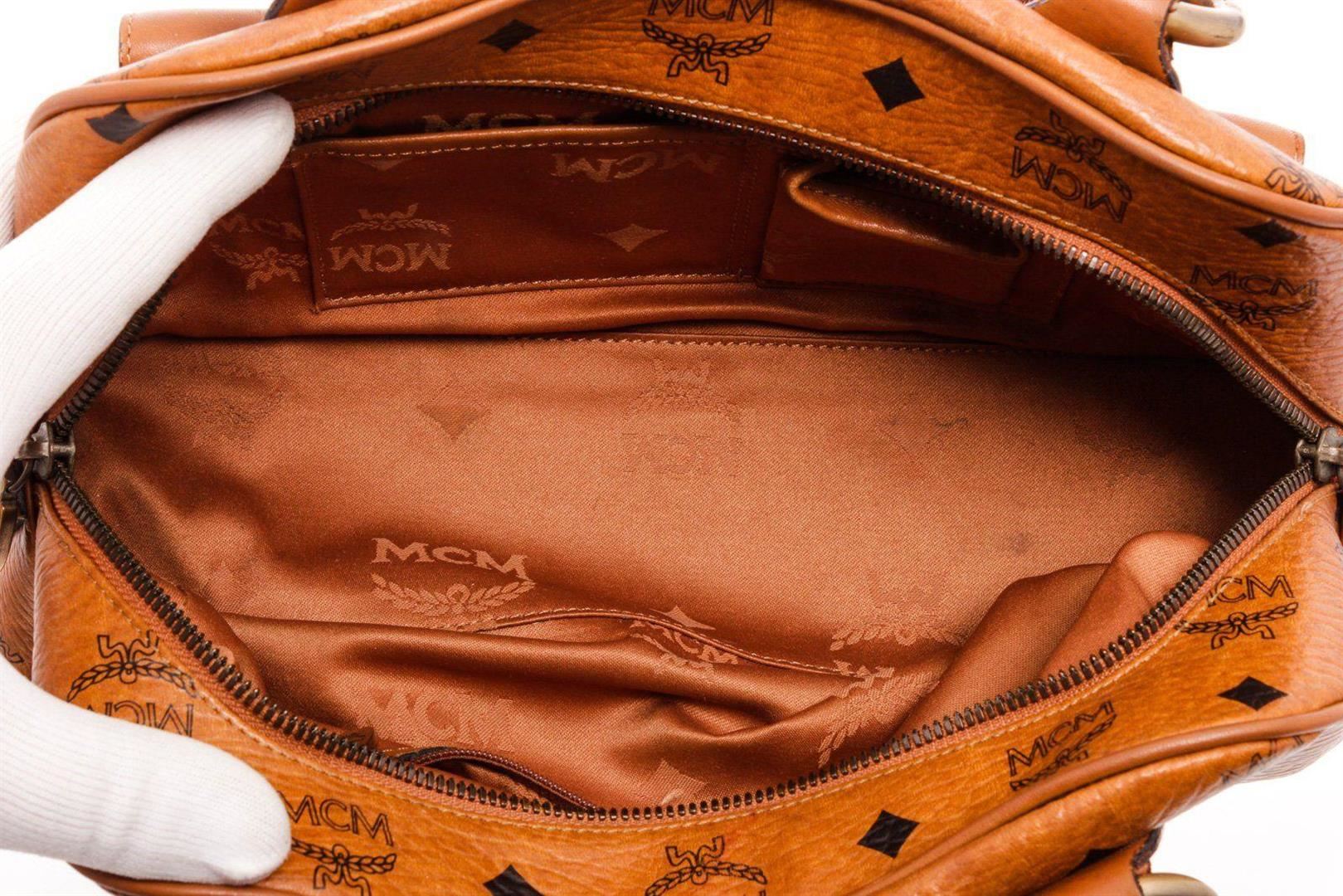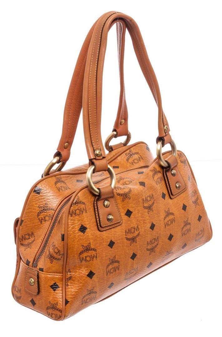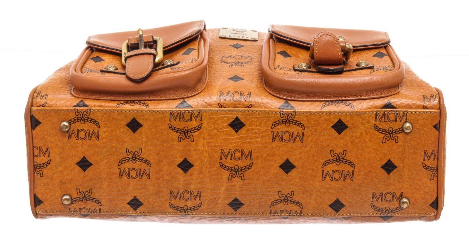 MCM cognac Visetos coated canvas Tote Bag, nappa leather trim, gold-tone hardware, dual top handle and zipper closure. Measurements: Length: 6.25 in / 16 cm Width: 14.75 in / 37 cm 9 in / 23 cm Condition: Pre-Owned Good overall, please see photographs for detail.