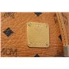 One MCM Cognac Visetos Leather Bucket Bag. Item is sold AS-IS. All available information is listed in the description and shown in the photo. MCM Cognac Visetos Leather Bucket Bag with dark gold-toned hardware, interior side zip pocket and open pocket, visetos coated canvas and trimmed in rich nappa leather, drawstring fastening with concealed magnetic closure, removable top handle, removable leather crossbody strap, drawstring closure. There are a few scratches on the leather. Please refer to photos. 10.2" x 9.1" x 5.5" inches / 4.01 x 3.58 x 2.16 cm