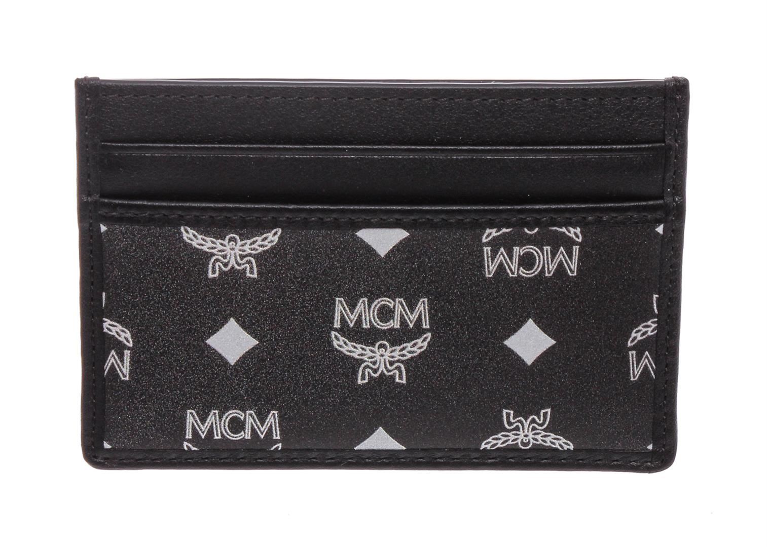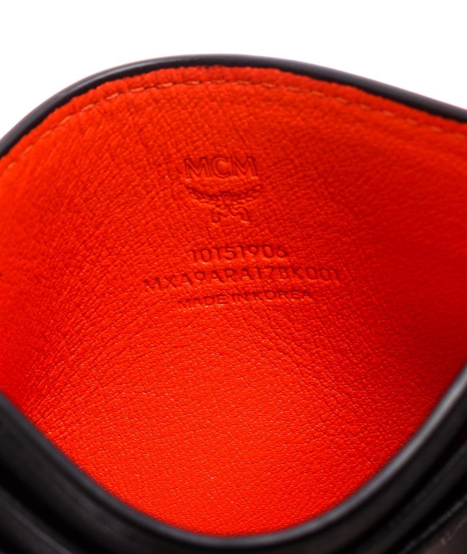 One MCM Estate Black Reflective Nylon Leather Mini Card Case. MCM Black Reflective Nylon Mini Card Case with black leather trim, and orange leather interior.