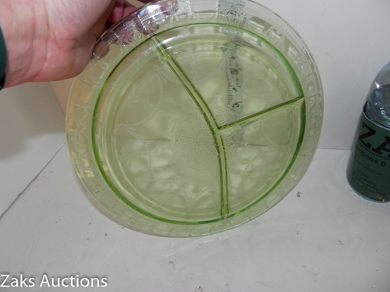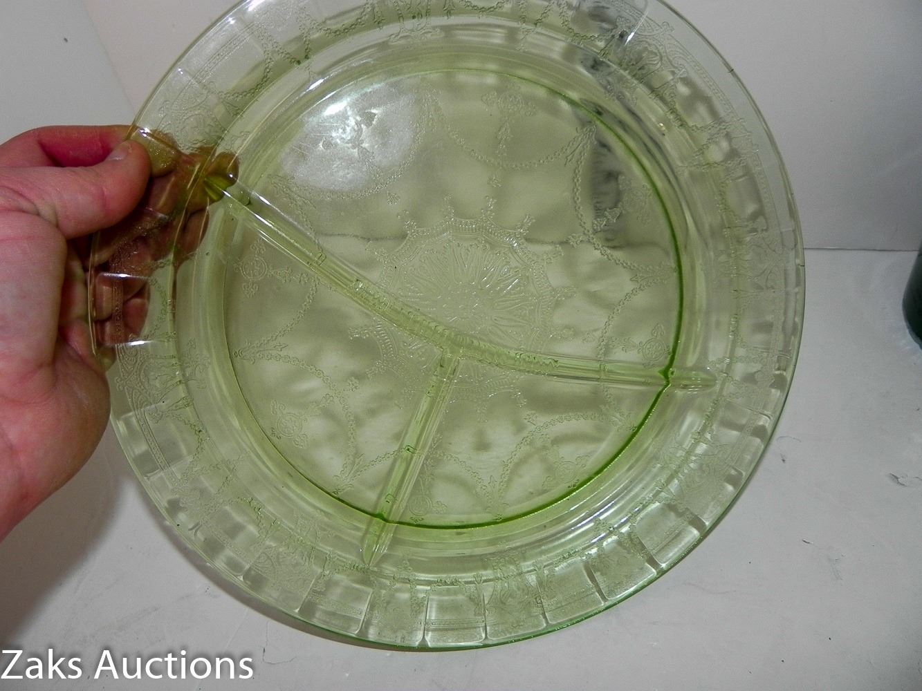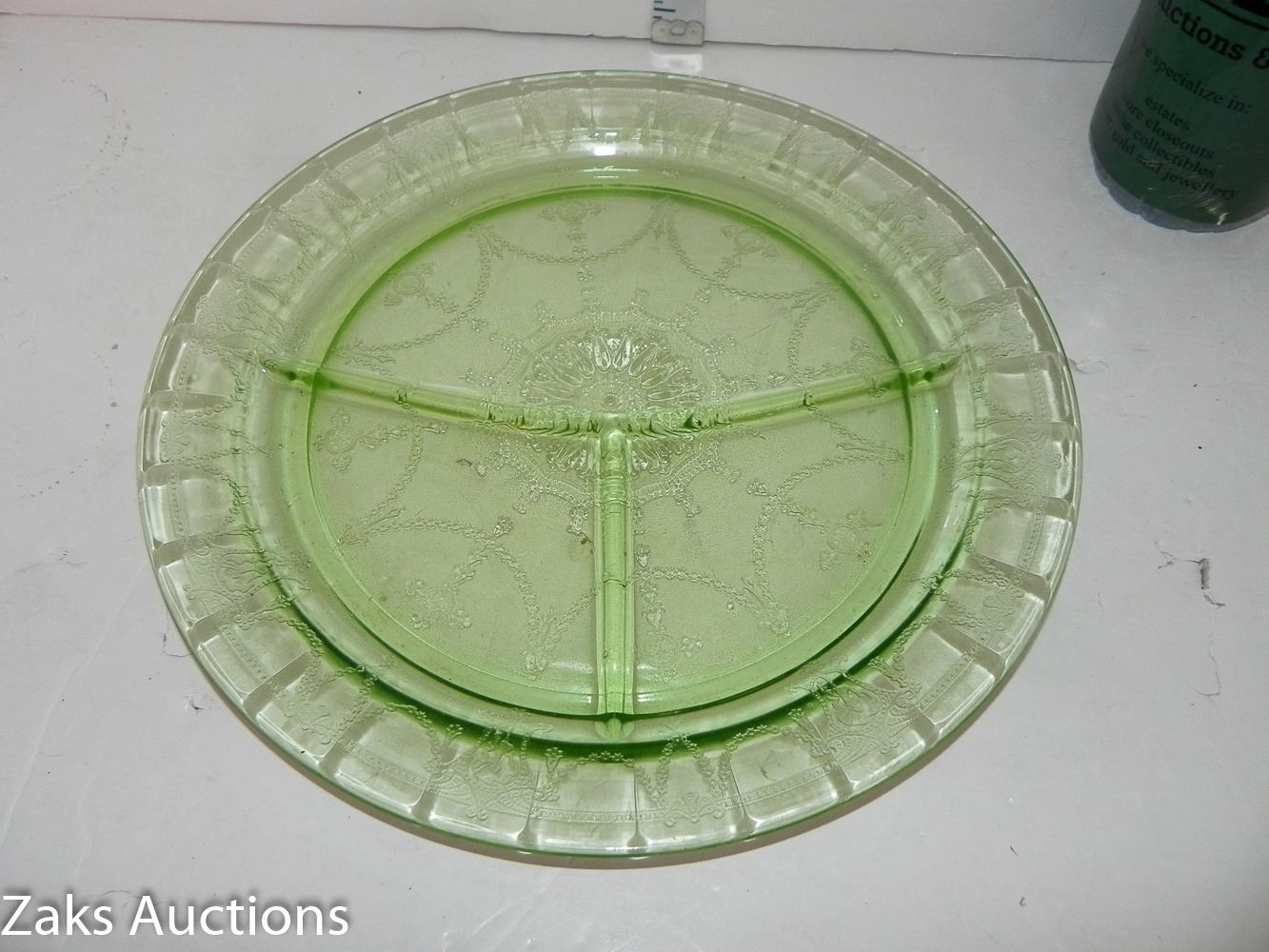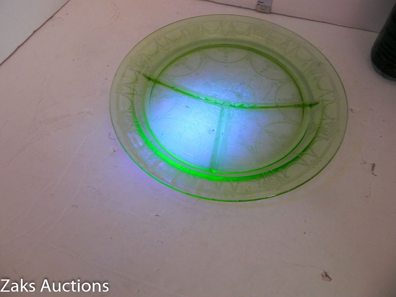 MCM Green Depression Uranium Divider Dinner Plate