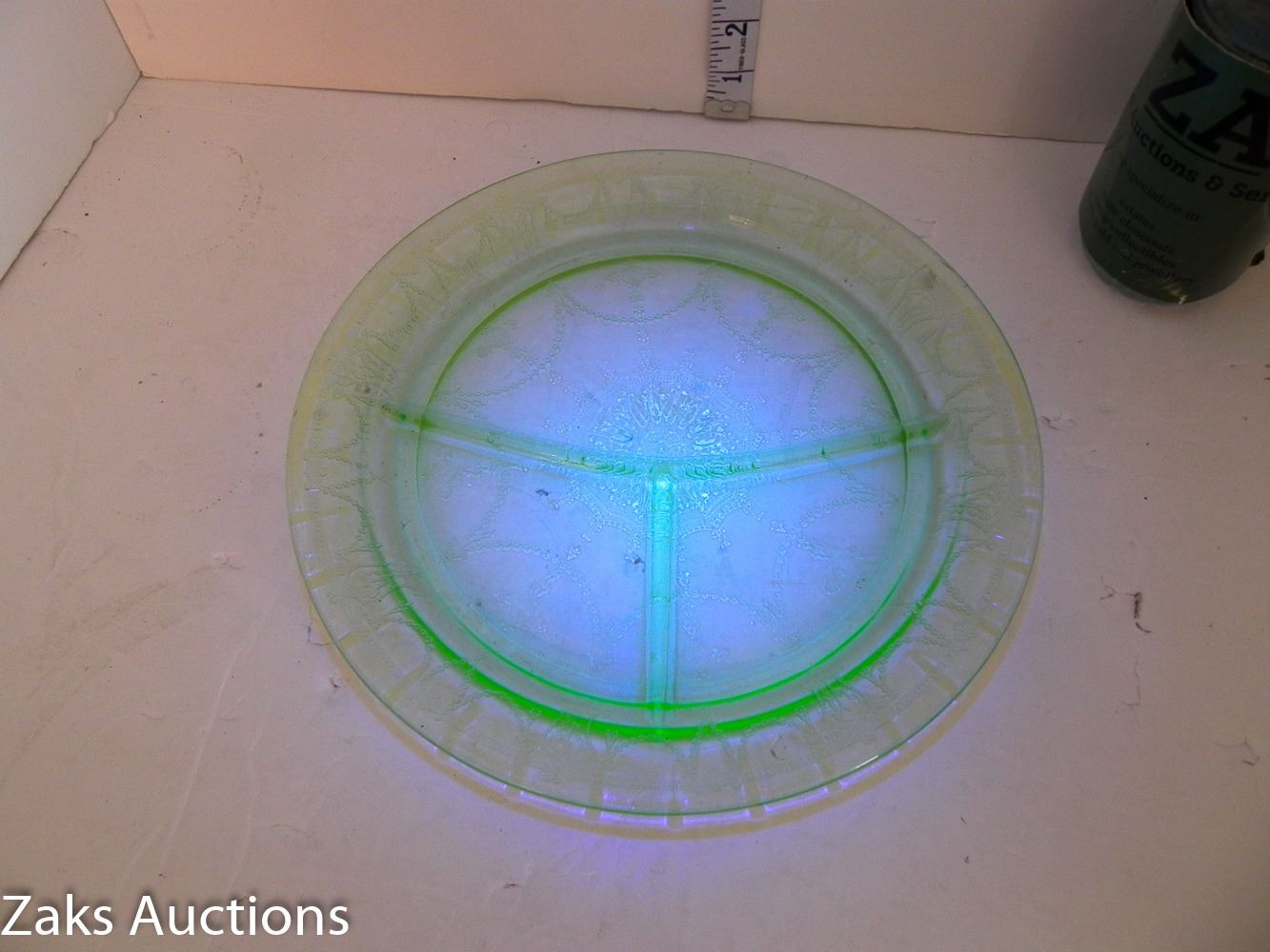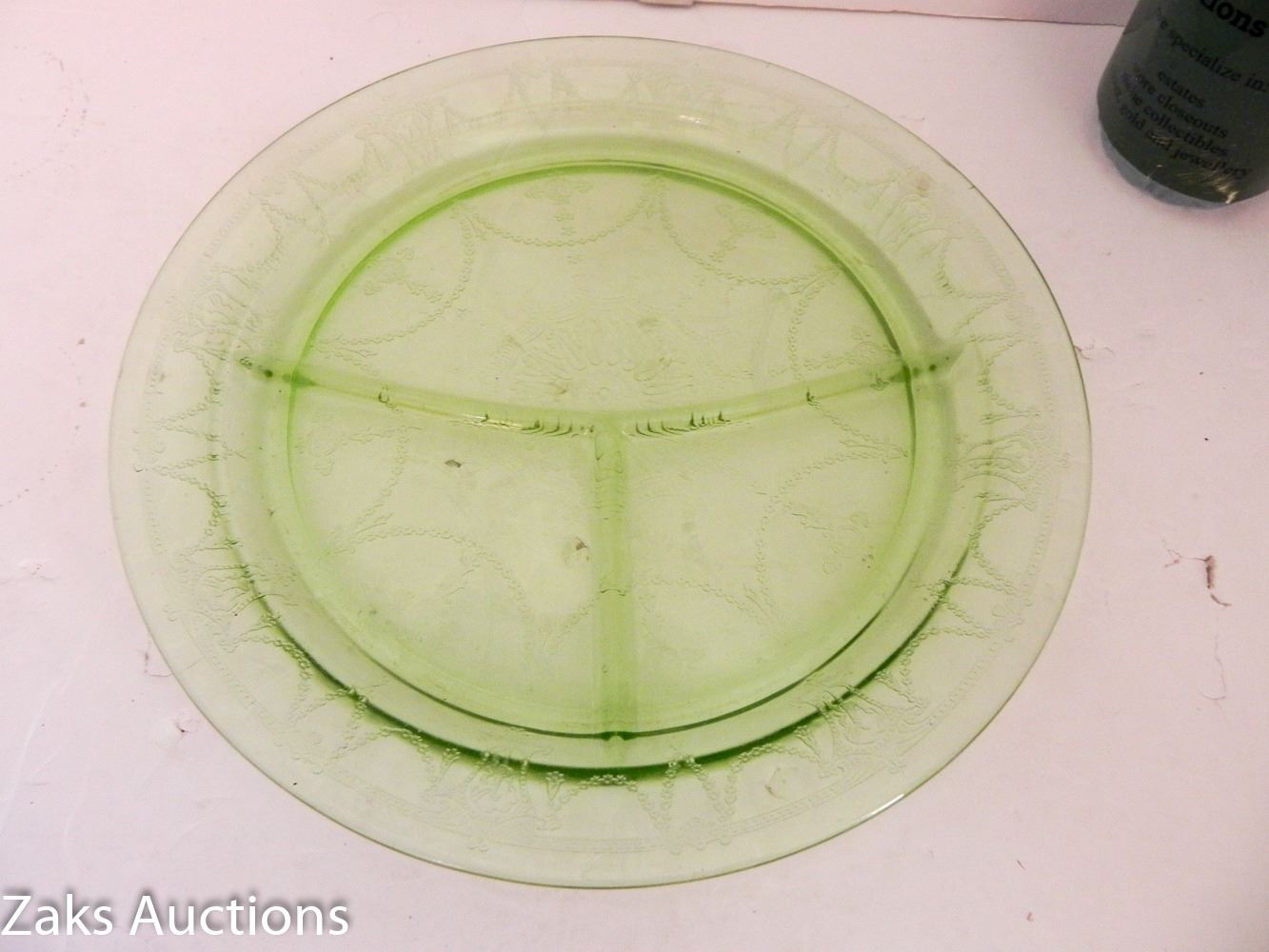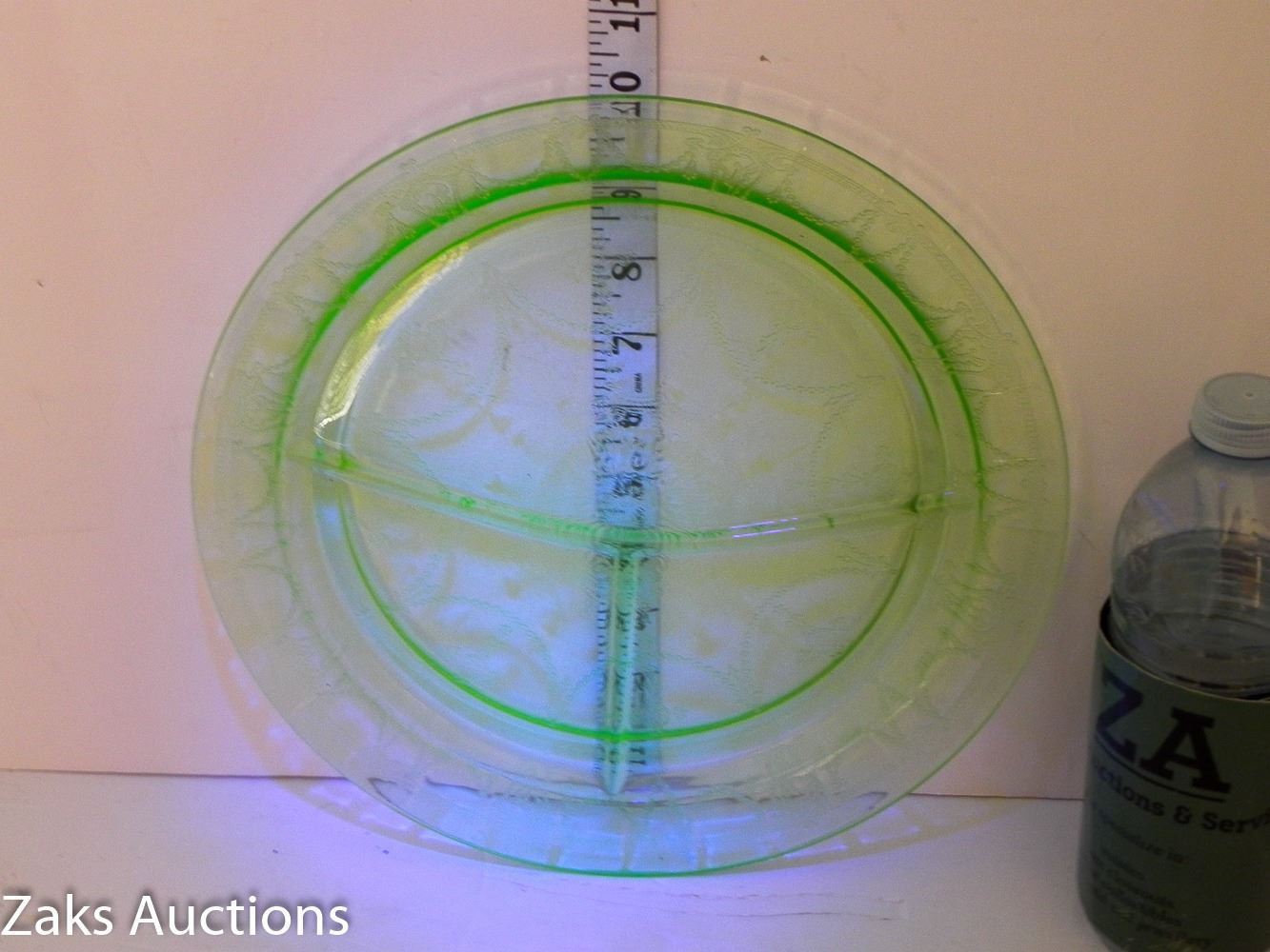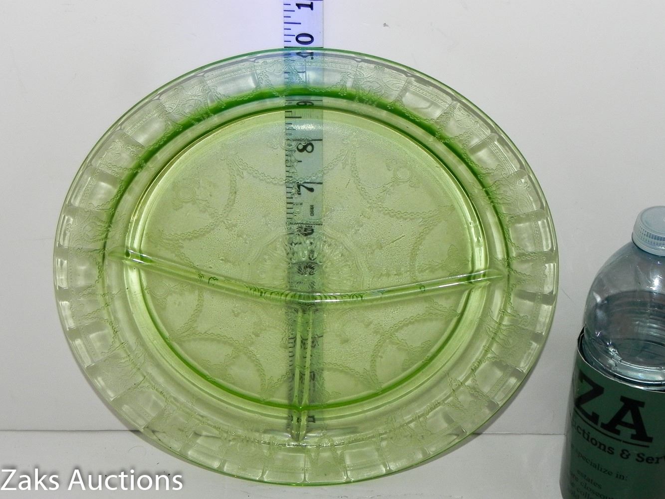 MCM Green Depression Uranium Divider Dinner Plate