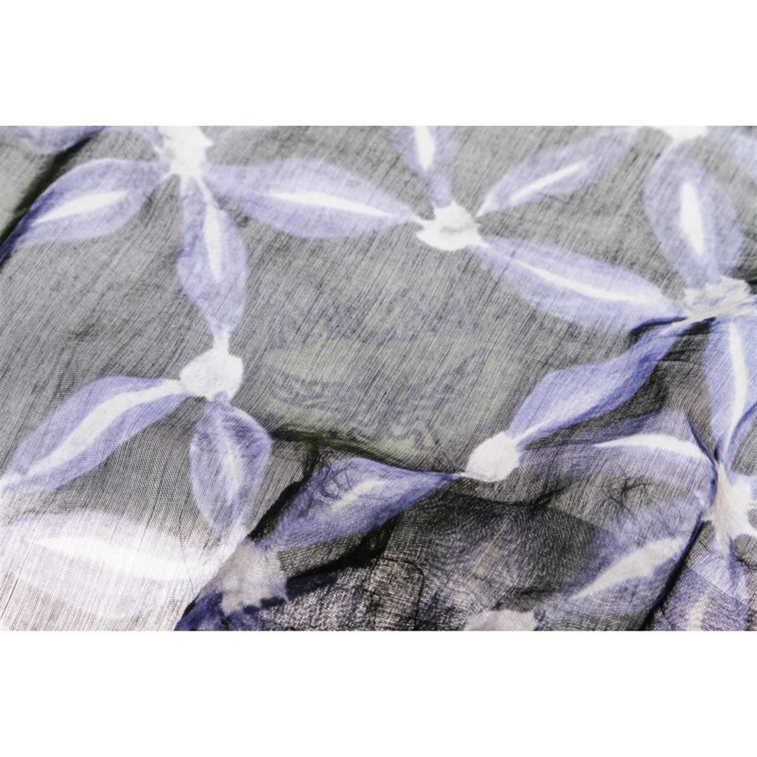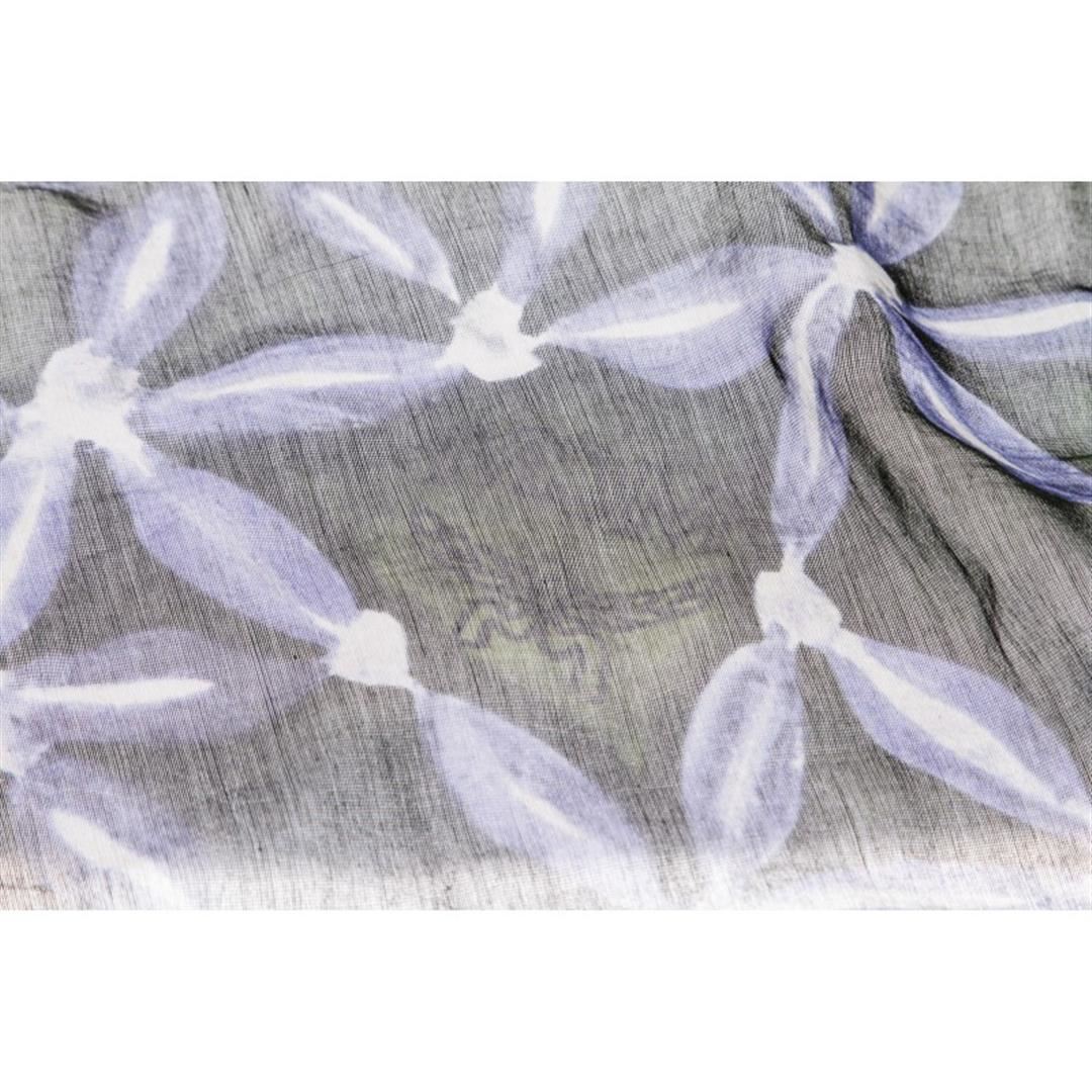 Floral print in green and blue silk. Item is pre-owned. Item Dimensions: 62"x26.5"/157.48cm67.31cm.