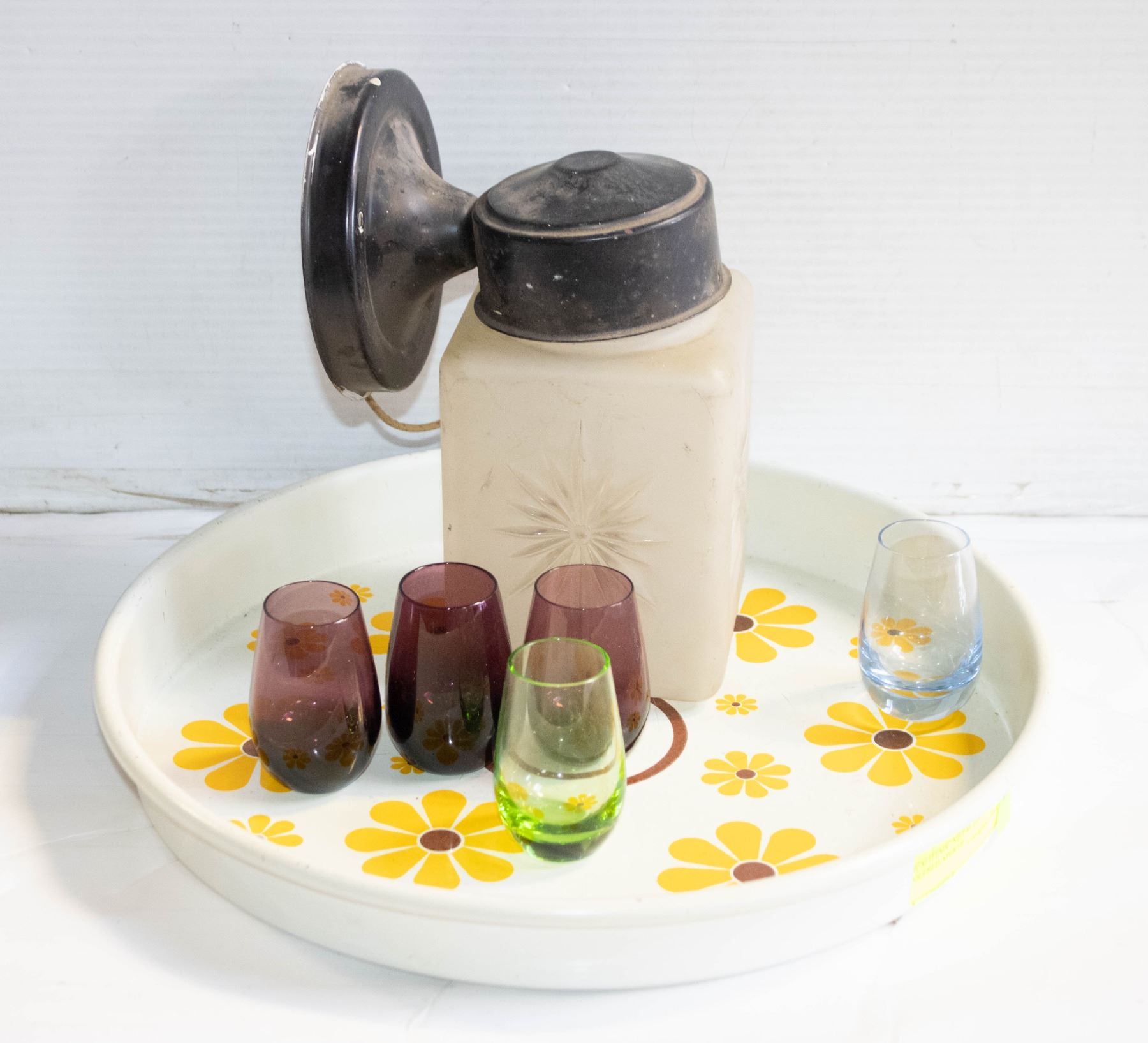 MCM ITEMS - METAL DAISY TRAY, COLERED APERTIF