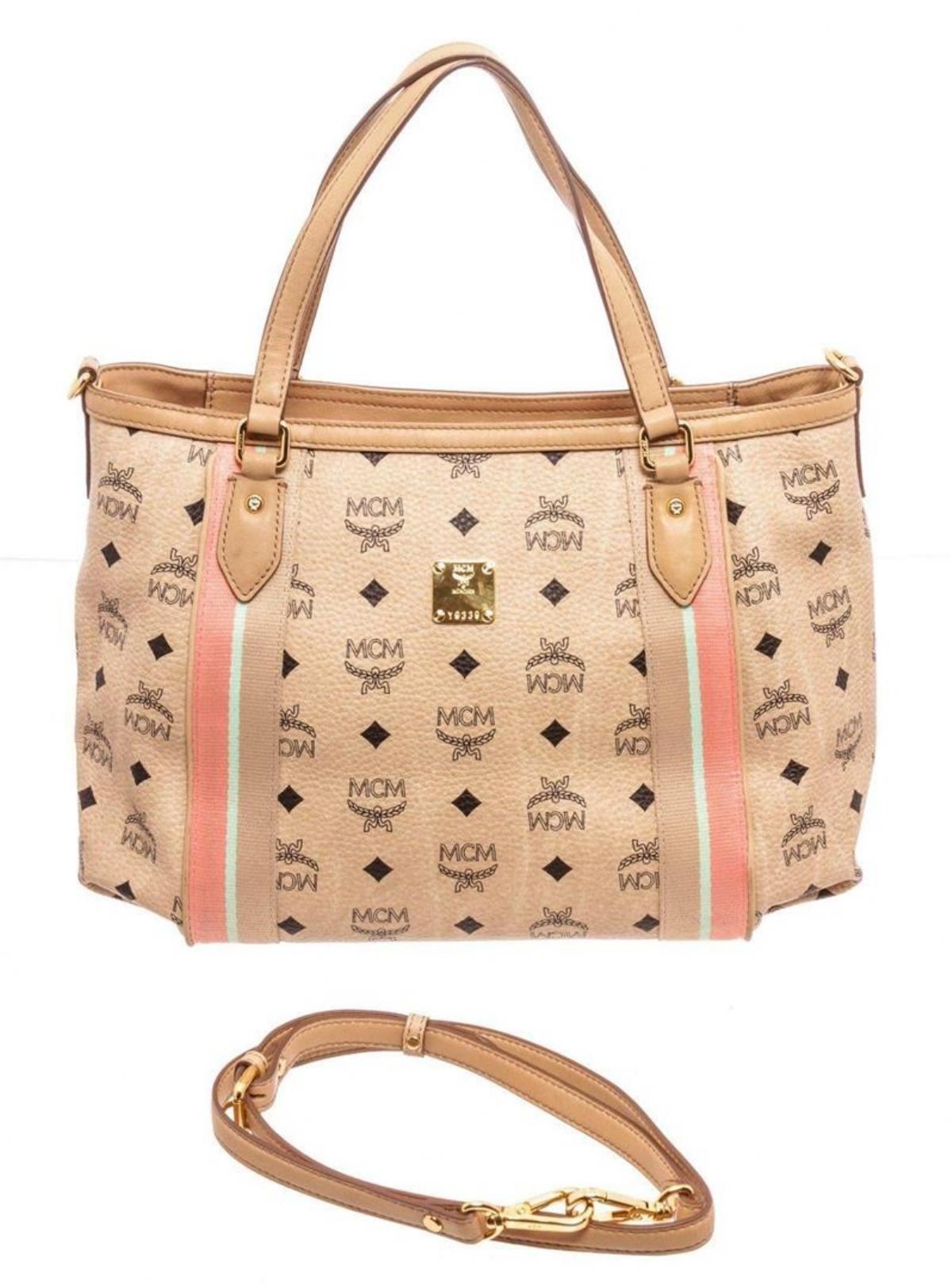 Ivory Visetos coated canvas Shopper Tote Bag with gold-tone hardware, nappa leather trim, interior zip pocket, detachable strap and zipper closure. Measurements: Length: 6 in / 15 cm Width: 15.5 in / 39 cm 10.5 in / 27 cmCONDITION: Pre-Owned Good overall, please see photographs for detail.