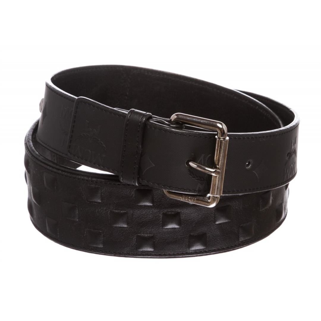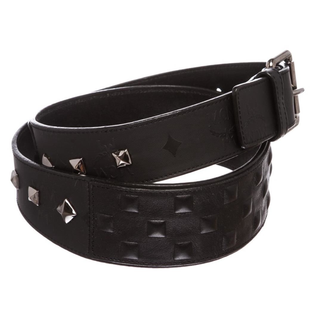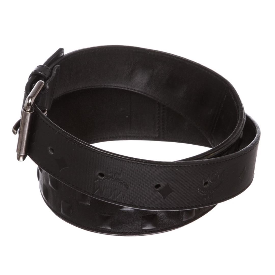 MCM Black leather studded belt with buckle closure. Item is pre-owned.