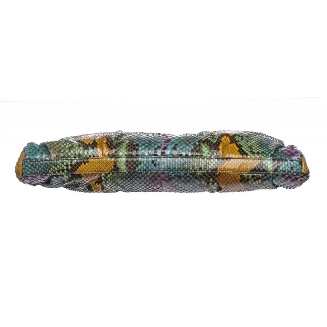 MCM multicolor snakeskin leather long clutch with gold tone snap closure. Inner brown fabric lined and one side zip pocket. Item is Pre-Owned.