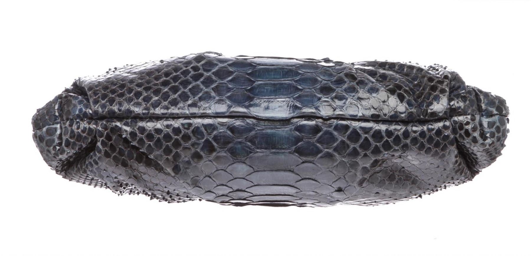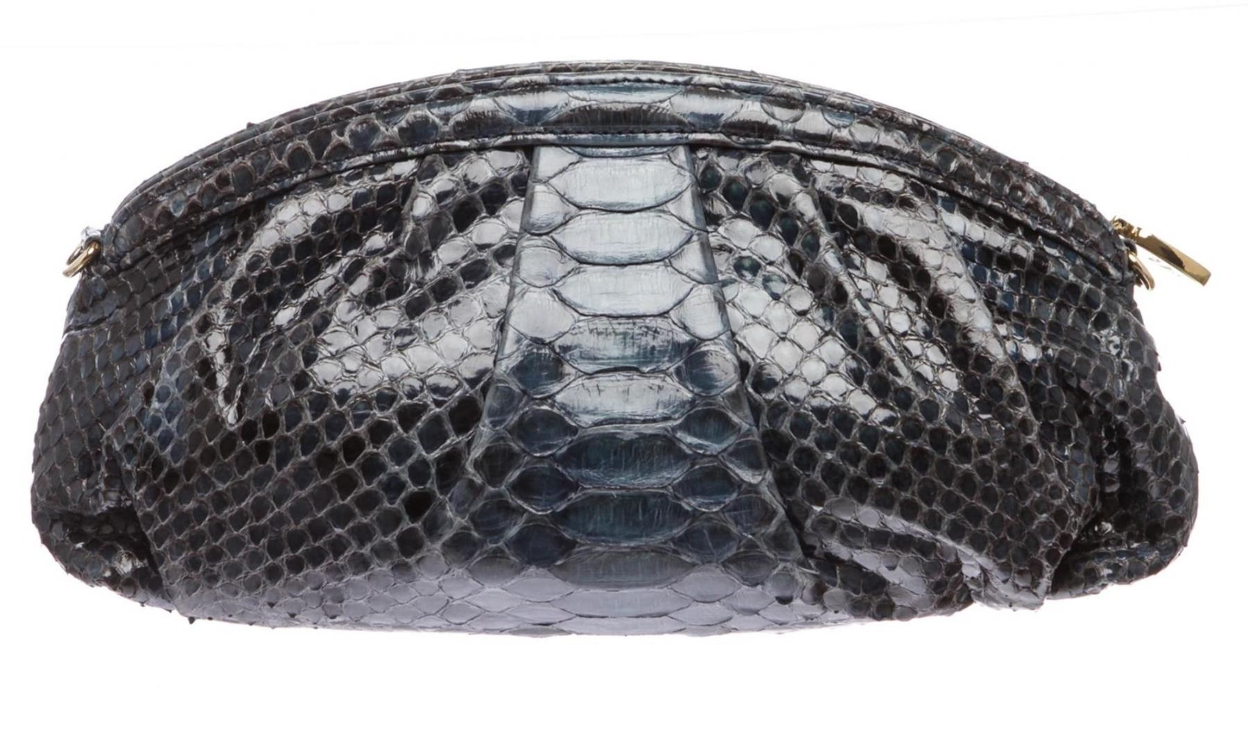 One MCM Navy Blue Python Snakeskin Clutch Bag. Overall zipper closure. Interior is satin lined with one slip pocket and one zipper pocket.
